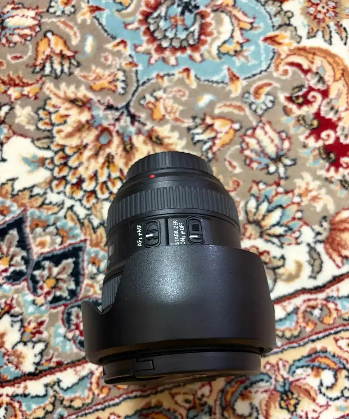 لنز کنون ۲۴-۷۰ اف ۴ کم کارکرد درحد نو بهمراه محافظ لنز و هود