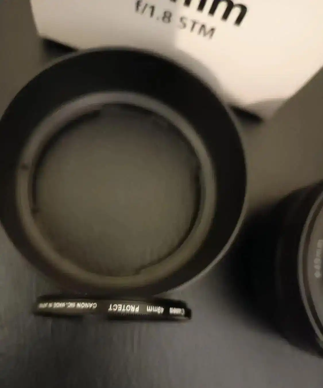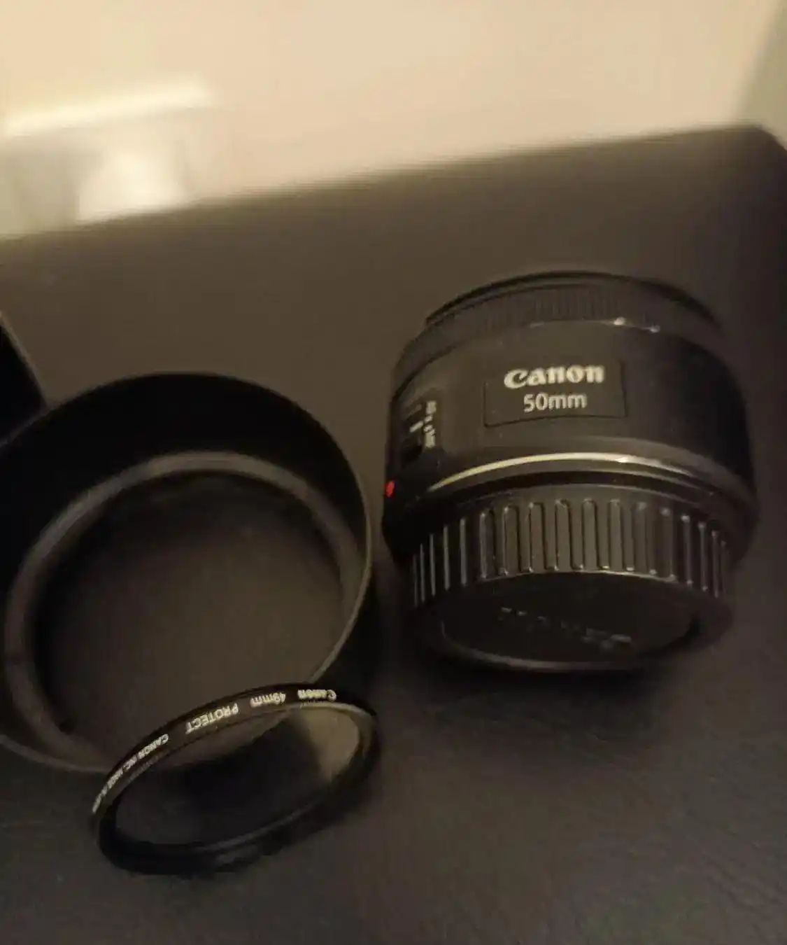 لنز دوربین برند کنون 50mm همراه فیلتر و هود