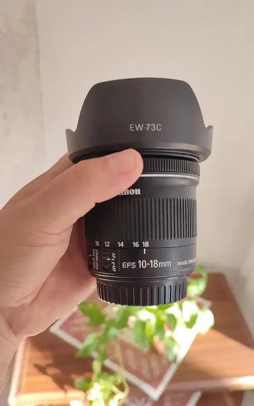 لنز Canon 10-18mm در حد آکبند با هود و فیلتر UV