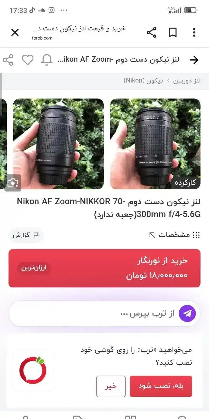 باسلام و درود فراوان لنز ۷۰ـ۳۰۰ اف ۴ درحد نو و بدون خط وخش هستش،به شرط اینکه هرجا خواستین بریم نگاه کنن دارای کارتن،هودی و محافظ لنز فوکوس اتومات برقی مناسب دوربینهای فول فریم و هاف فریم نیکونی بخدا همینو تو سایت گذاشتن ۱۸ تومن تخفیف ریز هم داره