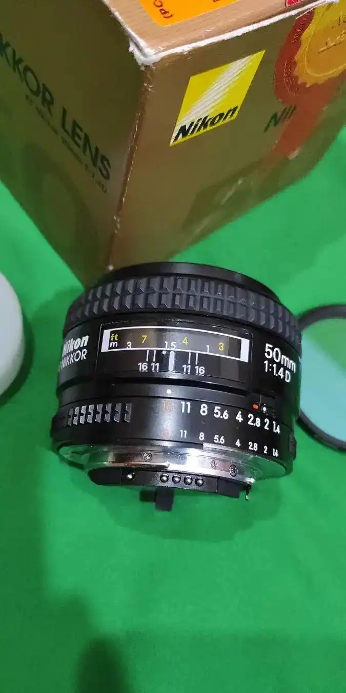 سلام لنز نیکون 50 سری دی f1.4 لنز در حد آکبند و انباکس با کارتون معاوضه با نیکون سری G