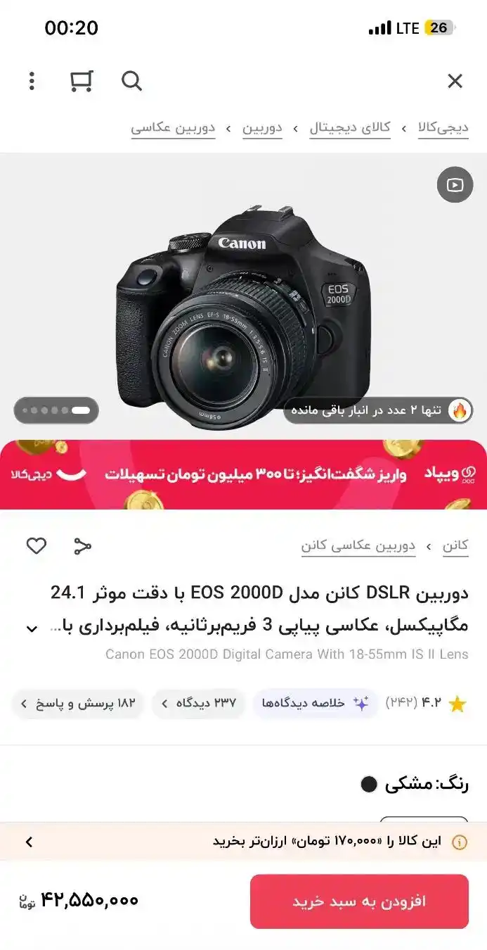 دوربین کنون 2000D