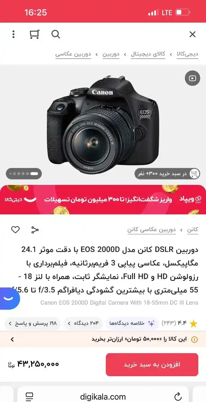 دوربین کنون 2000 D