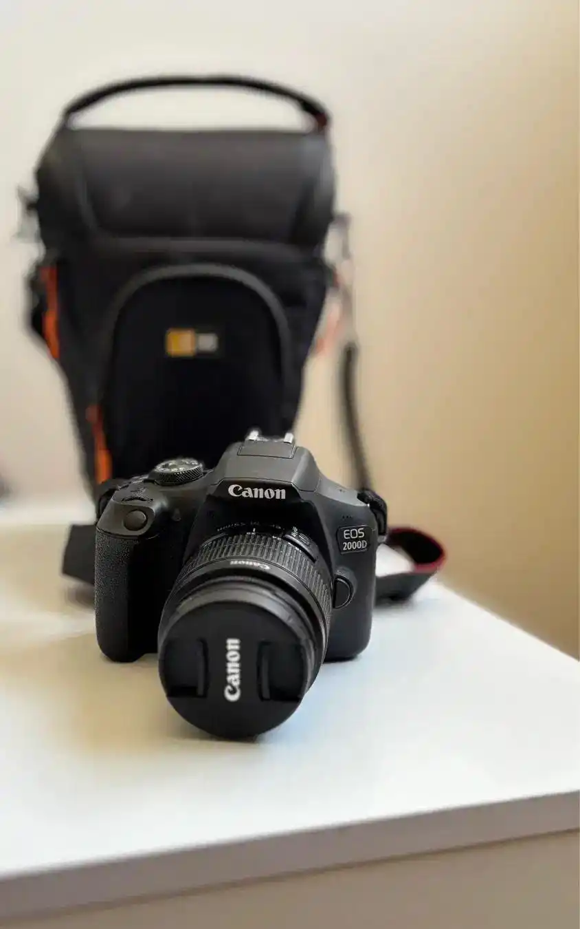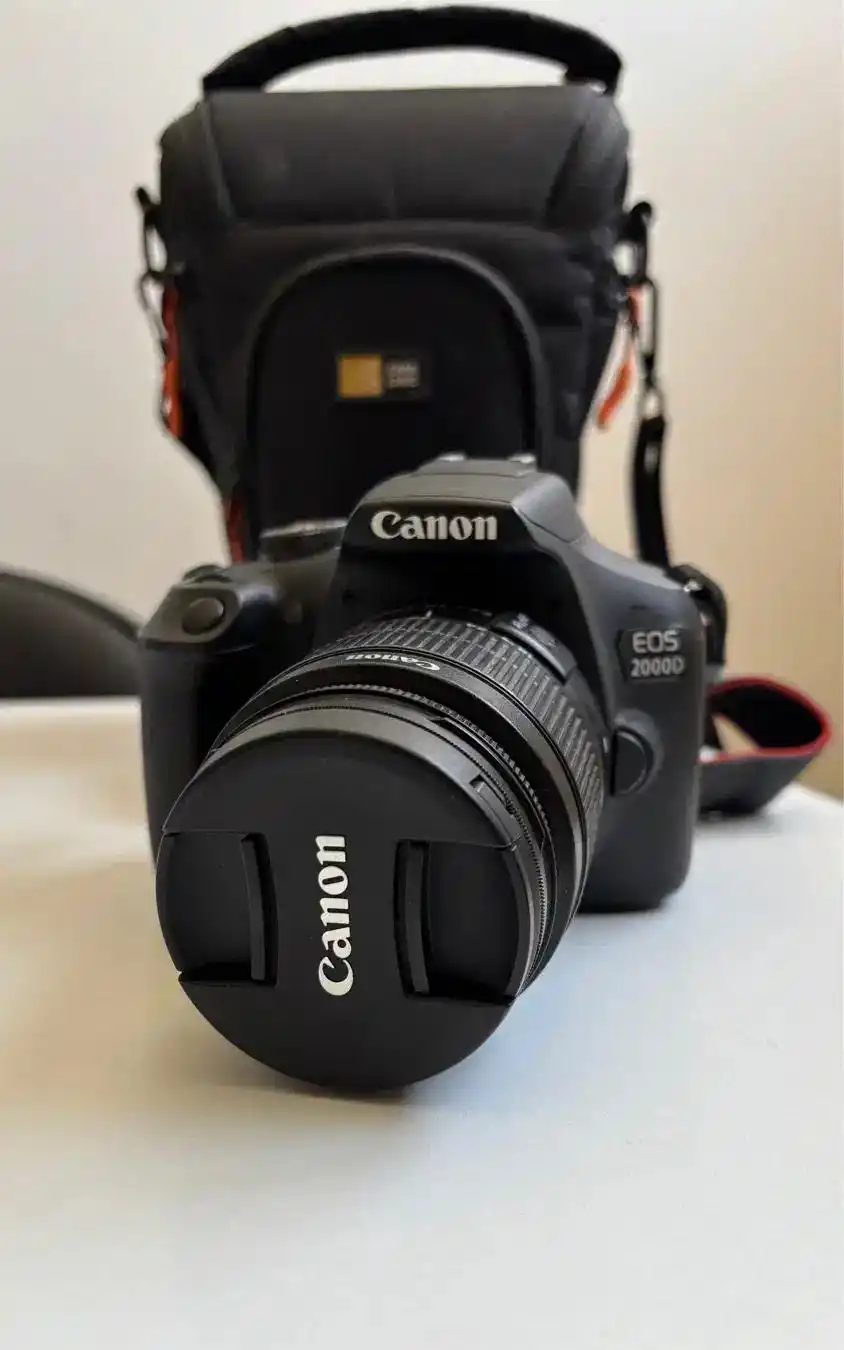 دوربین دیجیتال کنون 2000D با لنز ۱۸-۵۵ کاملا سالم و در حد نو همراه با کیف و محافظ لنز UV