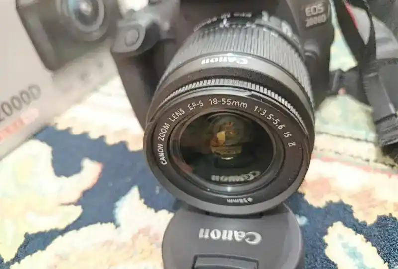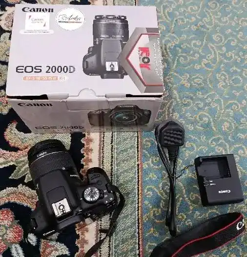 دوربین عکاسی Canon EOS 2000D kit EF-S 18-55mm IS II حدودا دوماه است خریداری شده و بسیار کم کار بوده حدودا ۵۰۰ شات عکس گرفته شده . با جعبه و تمام متعلقات بدون ضربه و خط و خش