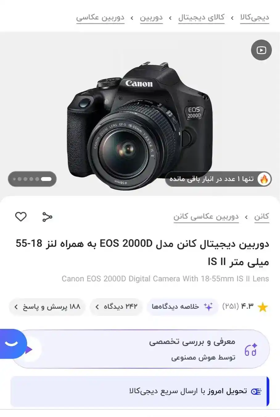 دوربین کانن ۲۰۰۰d شات زیر ۲۰۰ عدد