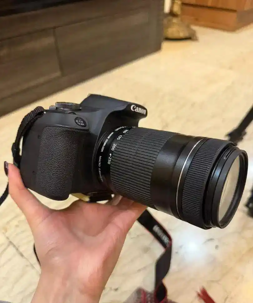 این دوربین از امریکا فرستاده شده و سفارش امریکا هست و کاملا نو. مشابه مدل 2000D. لنز 55-250 و لنز 18-55 دارد. پایه دوربین و کیف دوربین و شارژر و فیلتر uv و جعبه دارد