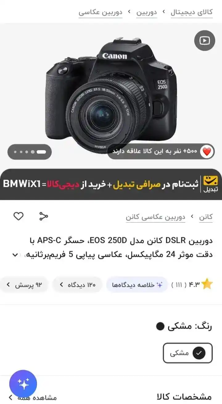 قیمت نو بدنه و لنز (بدون تجهیزات جانبی) در دیجیکالا حدود ۶۱ میلیون تومان است و قیمت درج شده آگهی شامل دوربین + لنز + تمامی تجهیزات نامبرده میباشد.