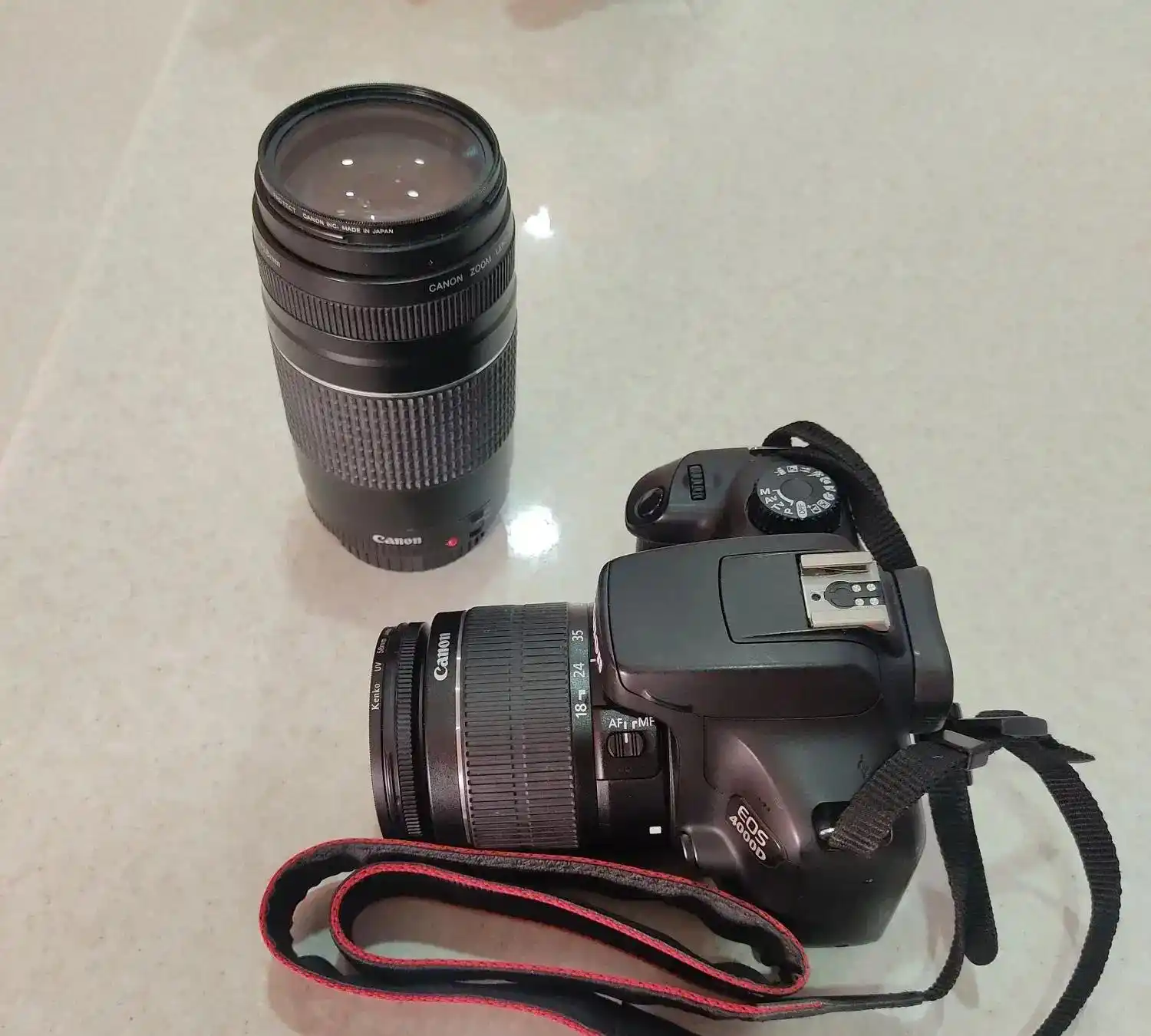 دوربین Cannon ® 4000D با کارتن فابریک خودش به همراه لنز فابریک ۵۵ـ۱۸ به همراه لنز تله ۳۰۰-۷۵ به همراه کیف حمل دوربین و شارژر اصلی باتری سالم معاوضه «نداریم»