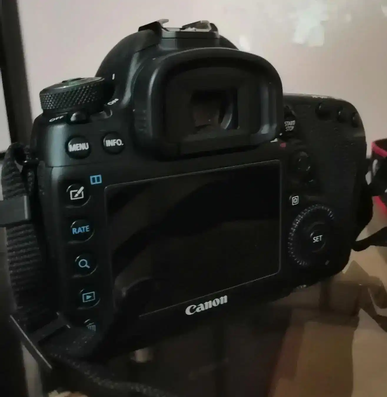 دوربین کنون 5 دی مارک 4 در حد نو به همراه کیف و بند دو باطری اصلی و لنز 50 میلی متری در حد نو بدون خط و خش سه هزار و هشتصد شات 3800