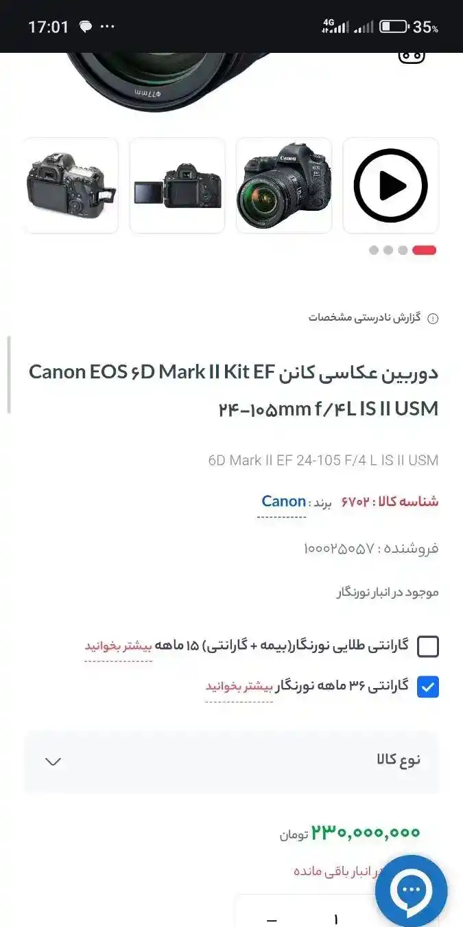 دوربین عکاسی کانن 6D mark II ( به همراه لنز )