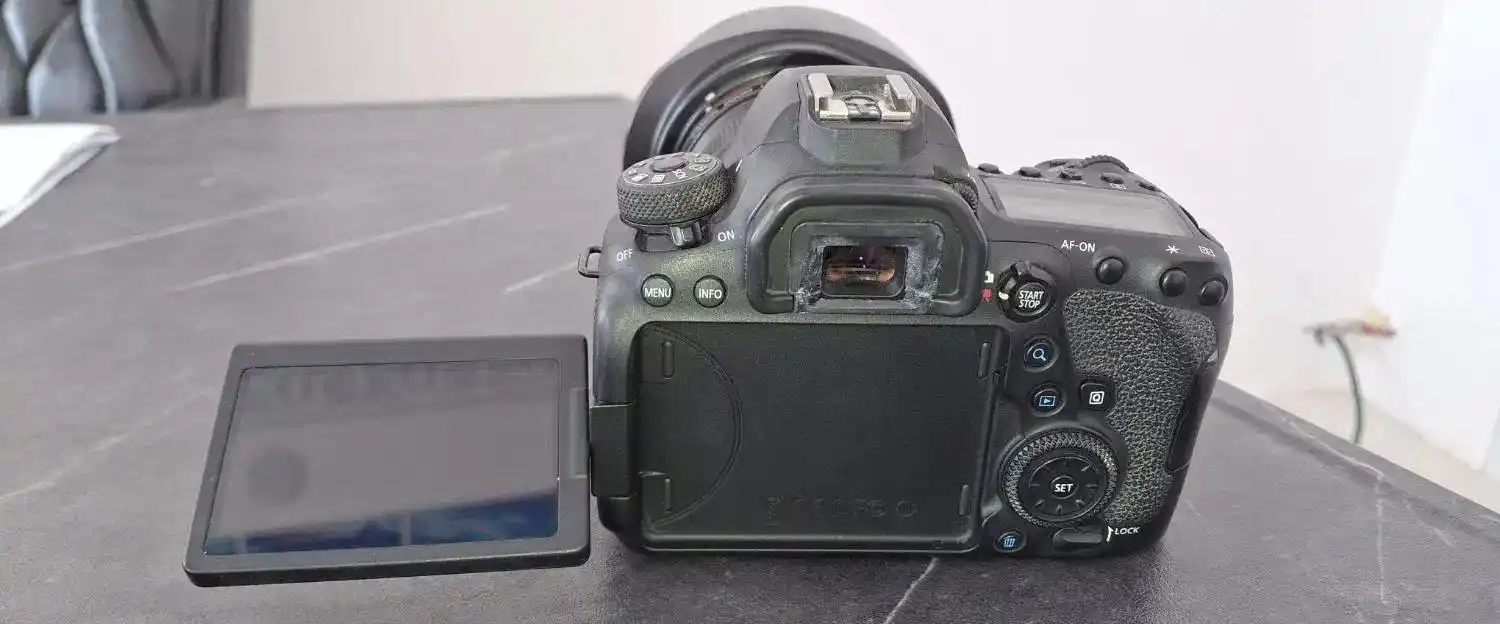 دوربین6Dمارک۲ درحدآکبند بالنز مویک بدون تعمیر با۲باطری ۱۷ بار شارژ 90D با لنز ۱۸×۱۳۵