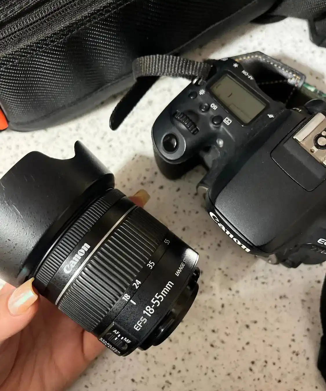 دوربین کاملا سالمه بدون هیچ تعمیر، بازشدگی یا مشکل فنی. با لنز ۱۸_۵۵ اقلام همراه: • جعبه • 2 تا رم 16 گیگ • باتری و شارژر اصلی • 2 بند • کیف همراه • روکش ضد اب کیف