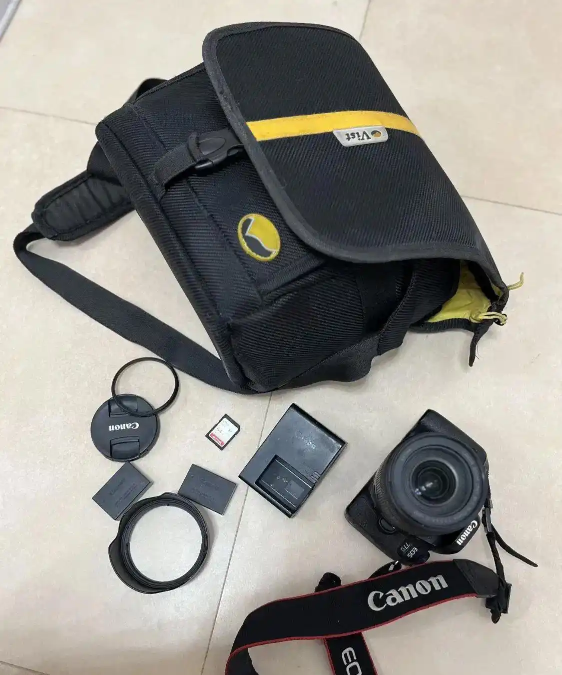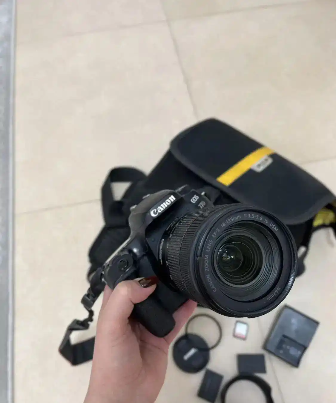 دوربین کنان ۷۷d واقعا نوعه به همراه لنز کیت 135-18 محاظ uv و هود لنزداره ۲عدد باطری اورجینال داره. محافظ صفحه نمایش داره کارتن موجوده رم۶۴کیگ داره شارژ داره کیف ضداب داره.