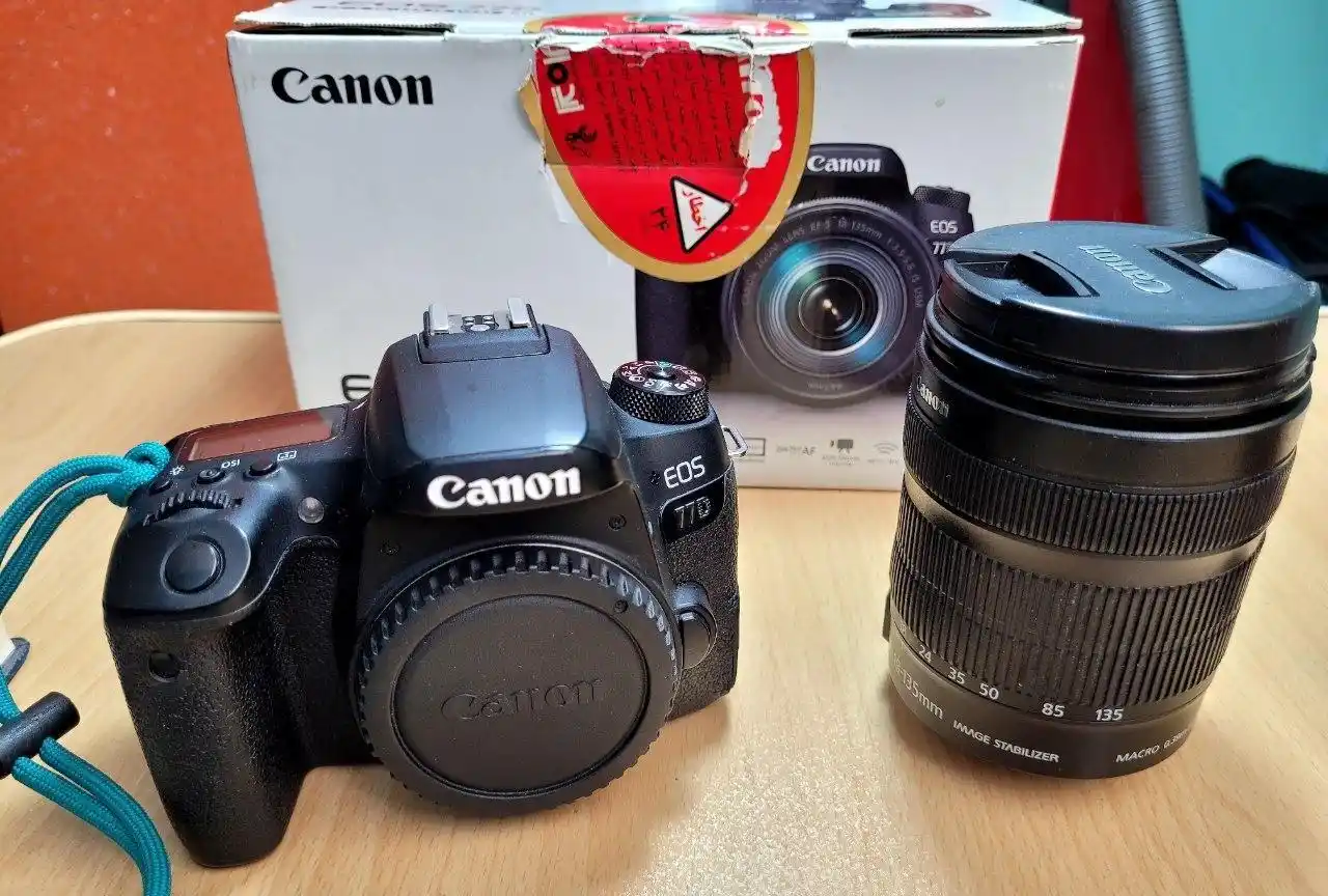 دوربین عکاسی کانن canon Eos 77D kit 18-135mm f/3.5-5.6 stm سالم و درحد بدون فیلم برداری تعداد شات حدود 30k همراه کیف وشارژر و کارتن فروش فوری
