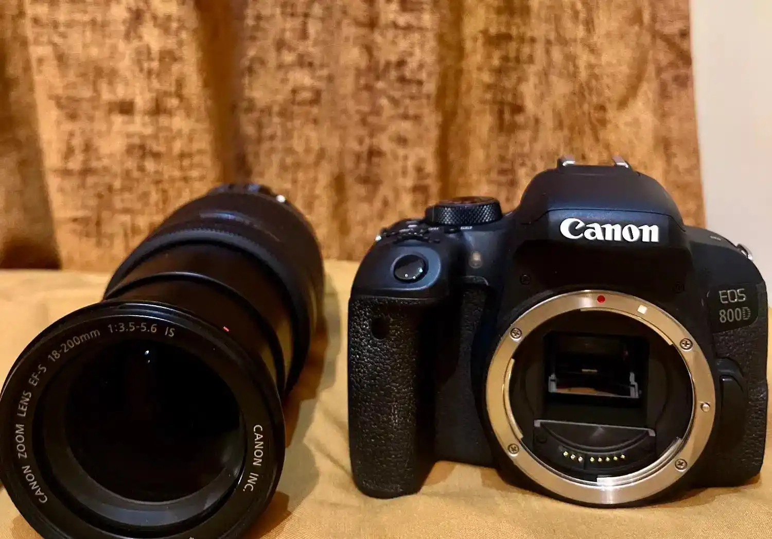 دوربین کانن 800D تمیز و سالم، مناسب عکاسی و فیلمبرداری نیمهحرفهای و حرفهای.