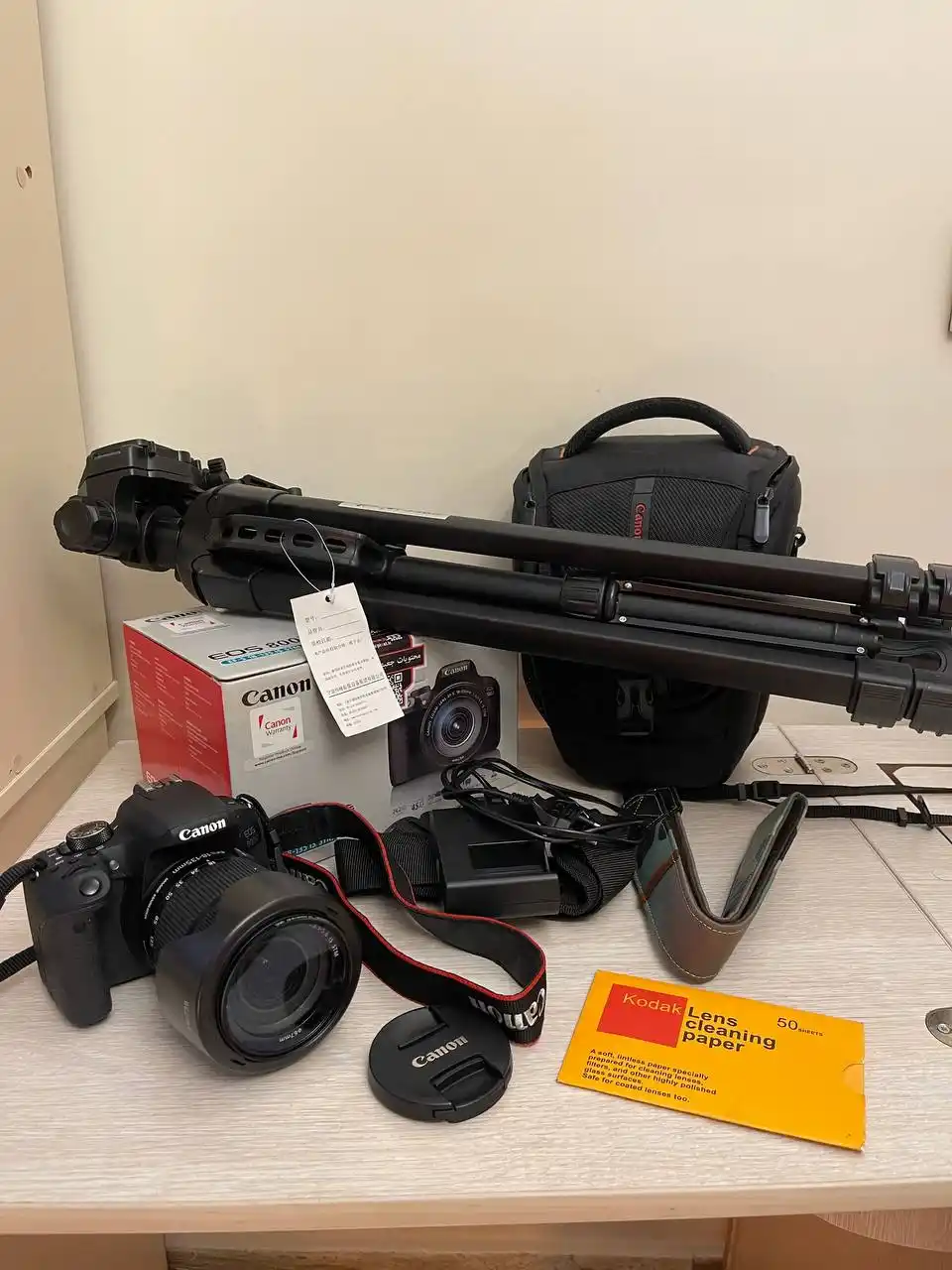 دوربین کنون 800D لنز ۱۸_۱۳۵ همراه با سه پایه دوربین wt3560 فیلتر UV کاغذ تمیز کننده لنز kodak کیف دوربین کنون بند دوربین اضافه باتری صد در صد سالم شارژر باتری و همراه رم دوربین نو،بدون هیچ خط و خش