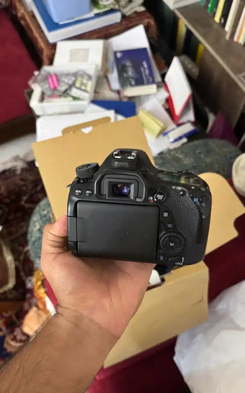 دوربین کنون 80d * لنز کیت 18-135 usm همراه هود و فیلتر Nd همراه با جعبه بدون لیزر و پیکسل سوختگی ۲۵۰۰۰ شات ۱۵۰۰۰ میرور (به این معنیه که بیشتر عکس بوده)