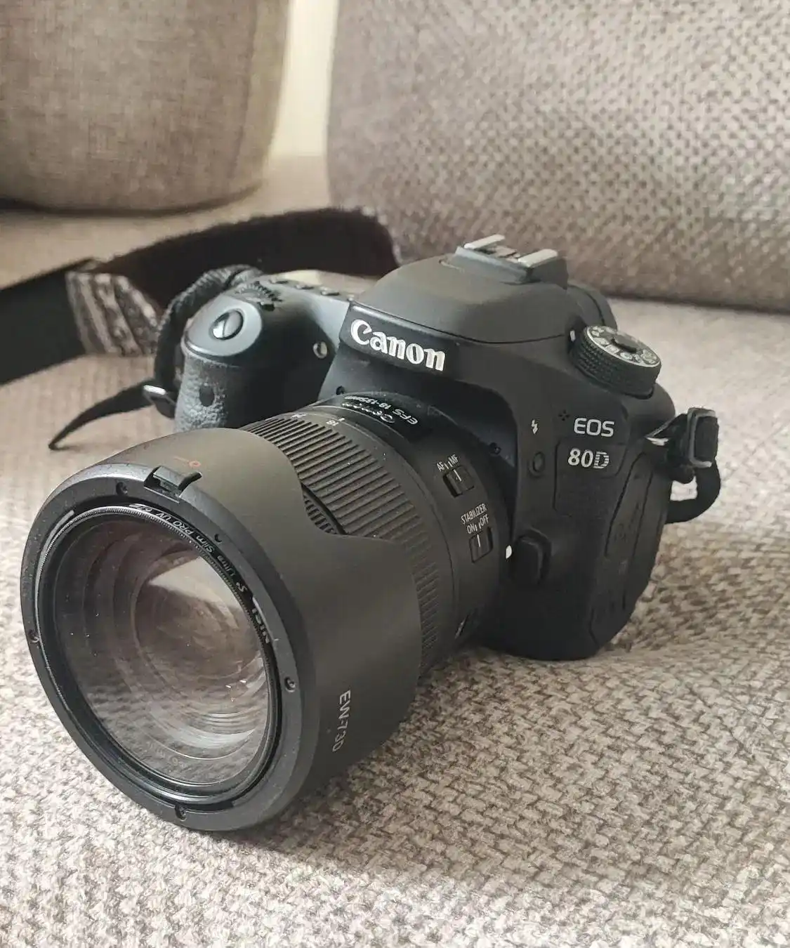 دوربین کانن 80D با لنز 18-135mm بسیار تمیز و بدونه خطا خش کلا ۲۰ هزارتا شات فیلم برداری فول اچ دی باتری و شارژر سالم اصلی تمام وسایل تکمیل