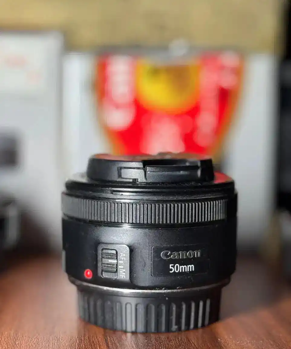لنز کنون 50mm f 1.8 به همراه هود و فیلتر یووی