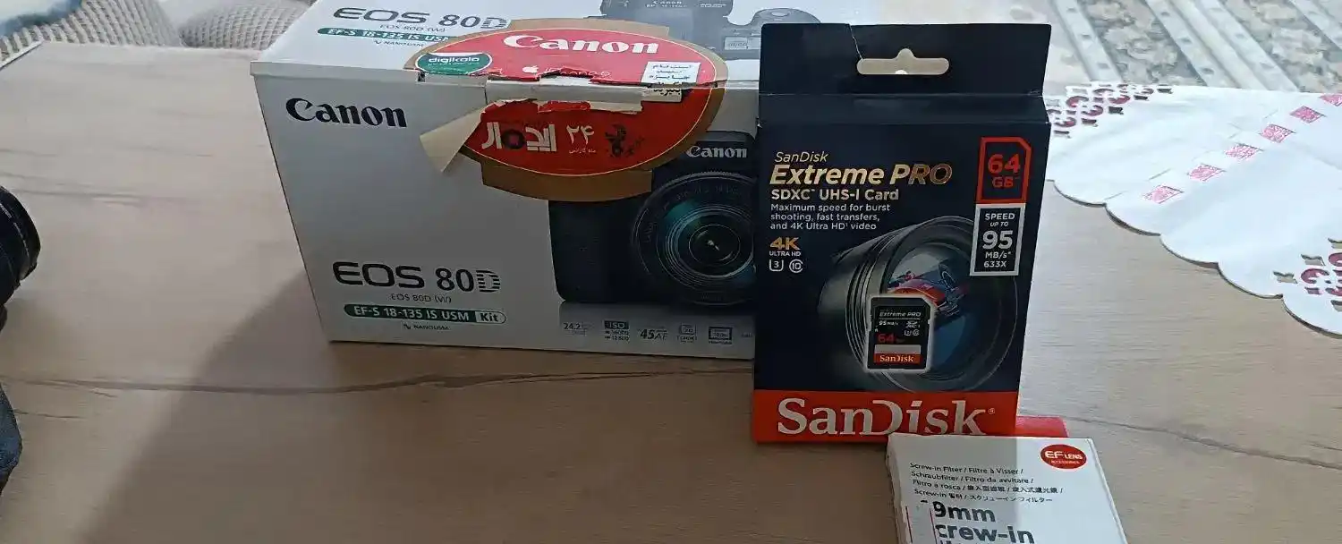 فروش یک عدد دوربین کنون 80D به همراه عدد لنز 18-135 usm یک عدد مموری کارت 64GB پرسرعت سندیسک محافظ لنز مناسب برای عکاسی حرفهای