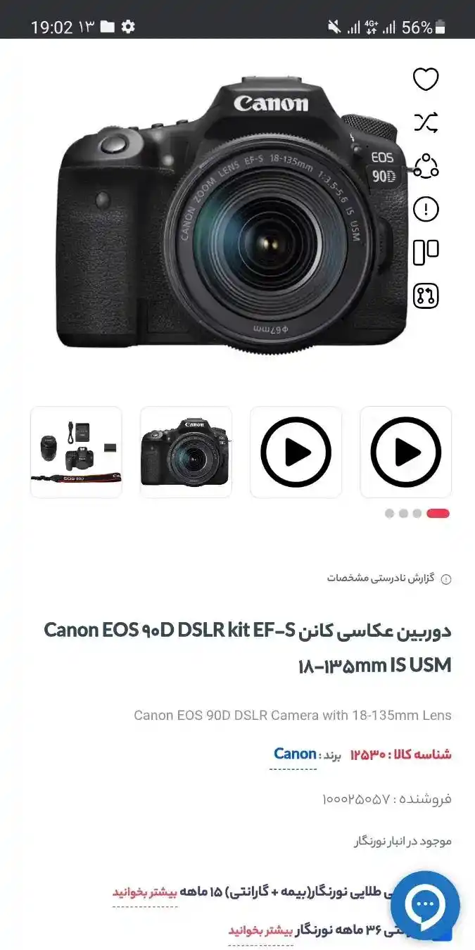 فروش فوری دوربین canon 90 D کنون نود دی