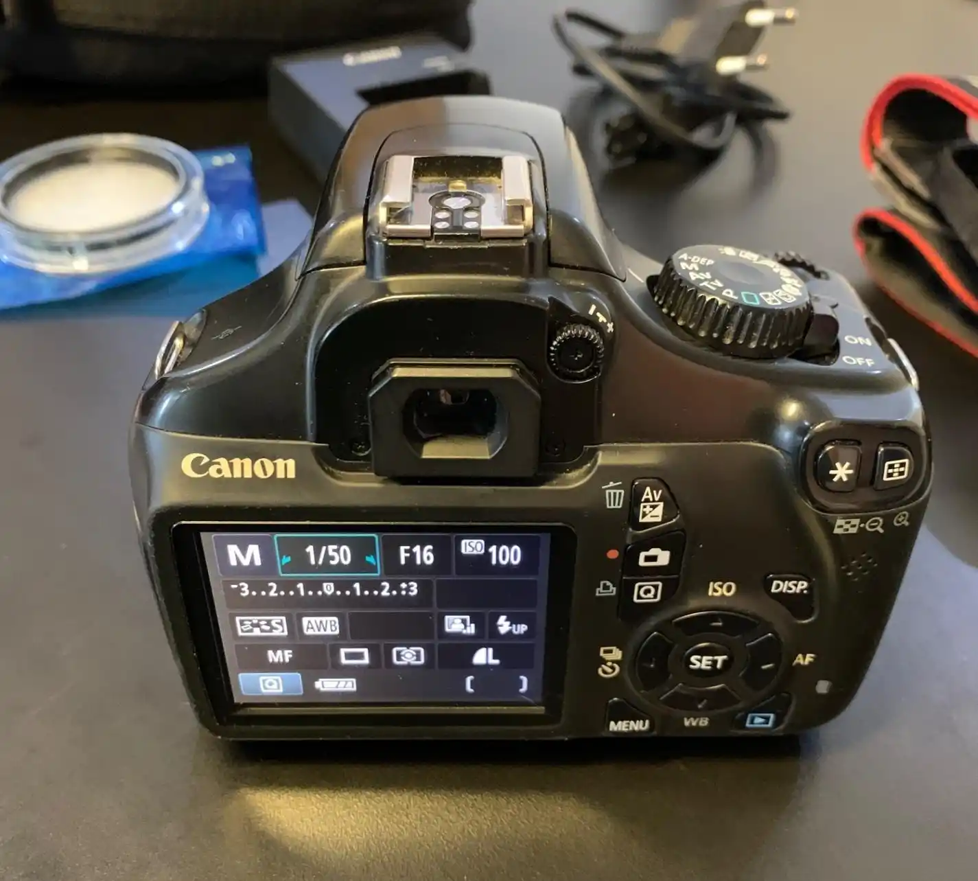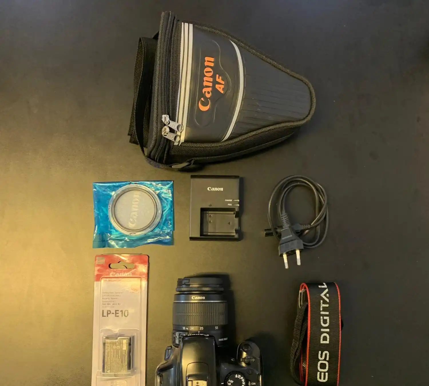 دوربین کنون 1100d تعداد شات ها 5000 بدنه و لنز سالم لنز ۱۸-۵۵ شارپ به همراه یک عدد فیلتر UV لنز و یک عدد باطری آکبند اضافه کیف حمل
