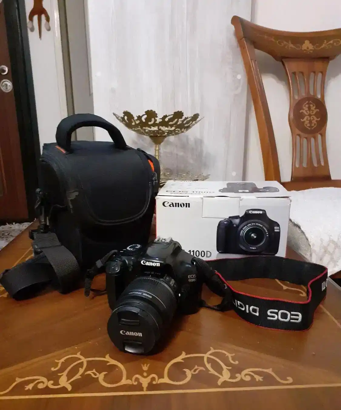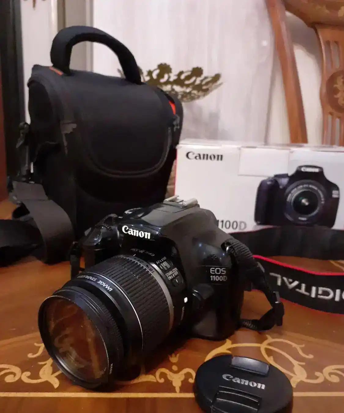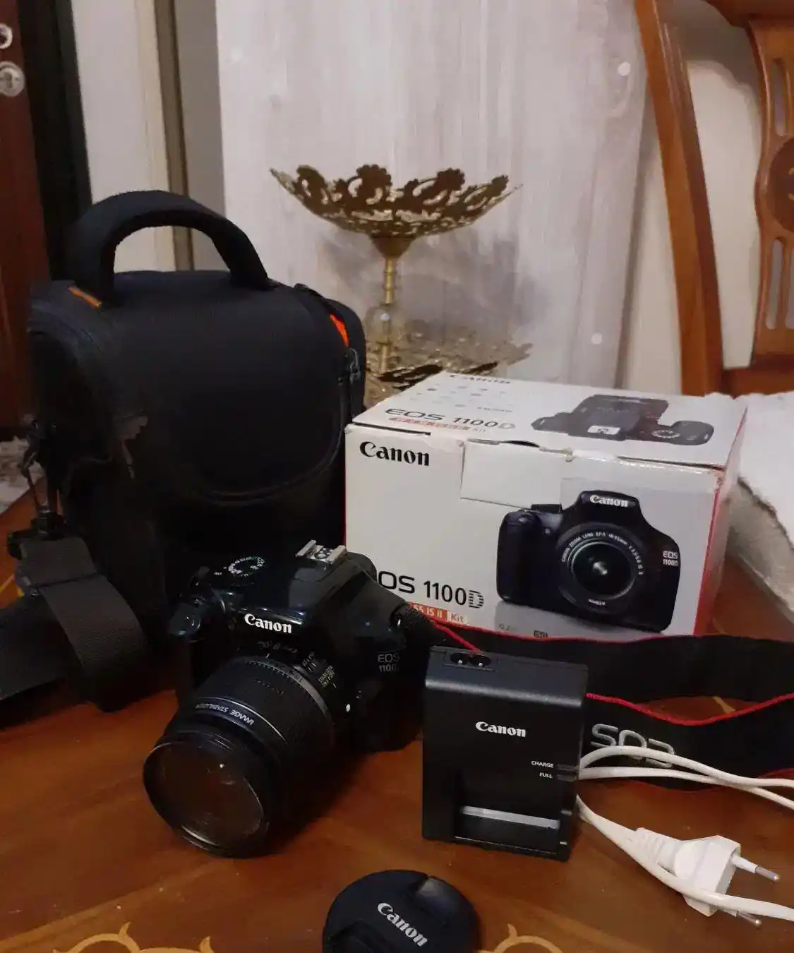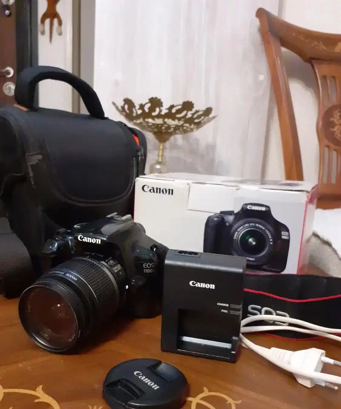 دوربین کنون ۱۱۰۰D لنز mm18-55 , 58mm دوربین فقط یه ترم مدرسه استفاده شده تمیز و بدون ایراد تخفیف هم داده میشود به همراه کیف و محافط لنز و شارزر و ،
