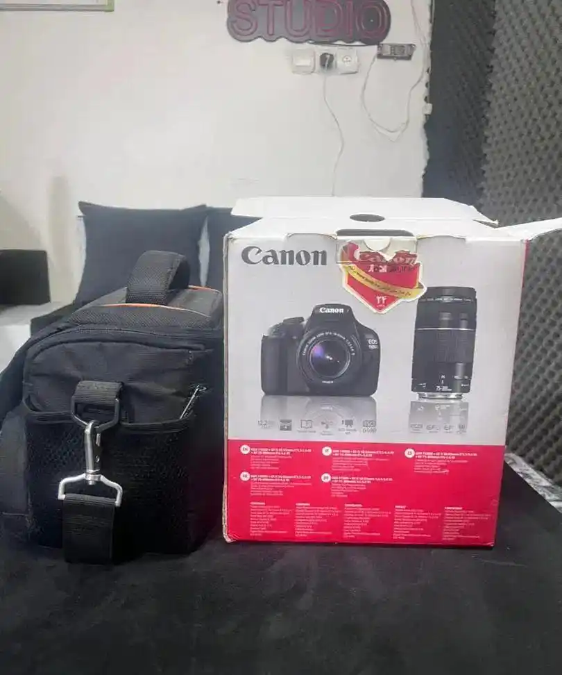 مدل 1100d باکارتن و متعلقات وکیف لنزه شات کم دوربین بدون ضربه خط وخش و درحد آکبنده کارتن - لنز - شارژر و رم