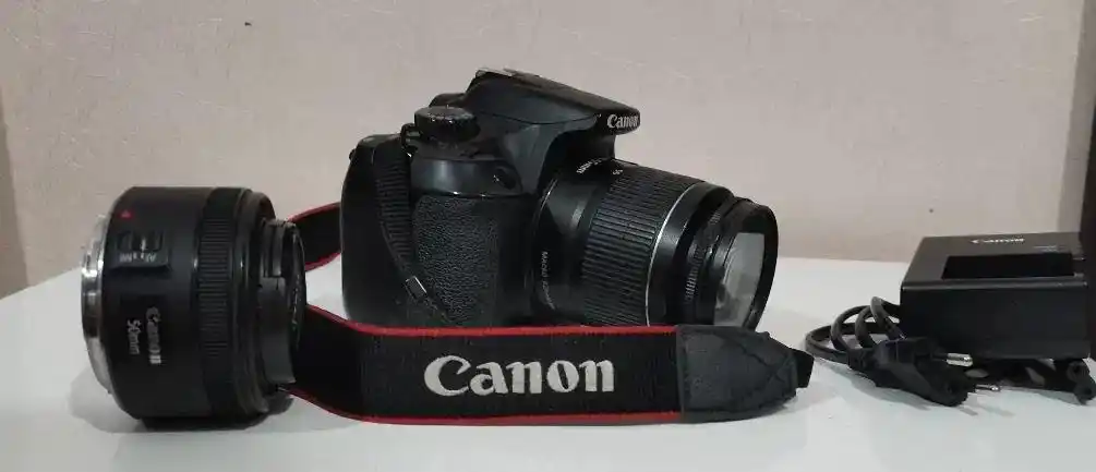 دوربین Canon 1300D بسیار تمیز، بدون تعمیر. بههمراه لنز 18-55 و لنز 50mm f/1.8. باکس، دفترچه، شارژر و لوازم کامل. لنزها سالم و بدون خطوخش. قیمت:25میلیون. اهواز – امکان تست حضوری.
