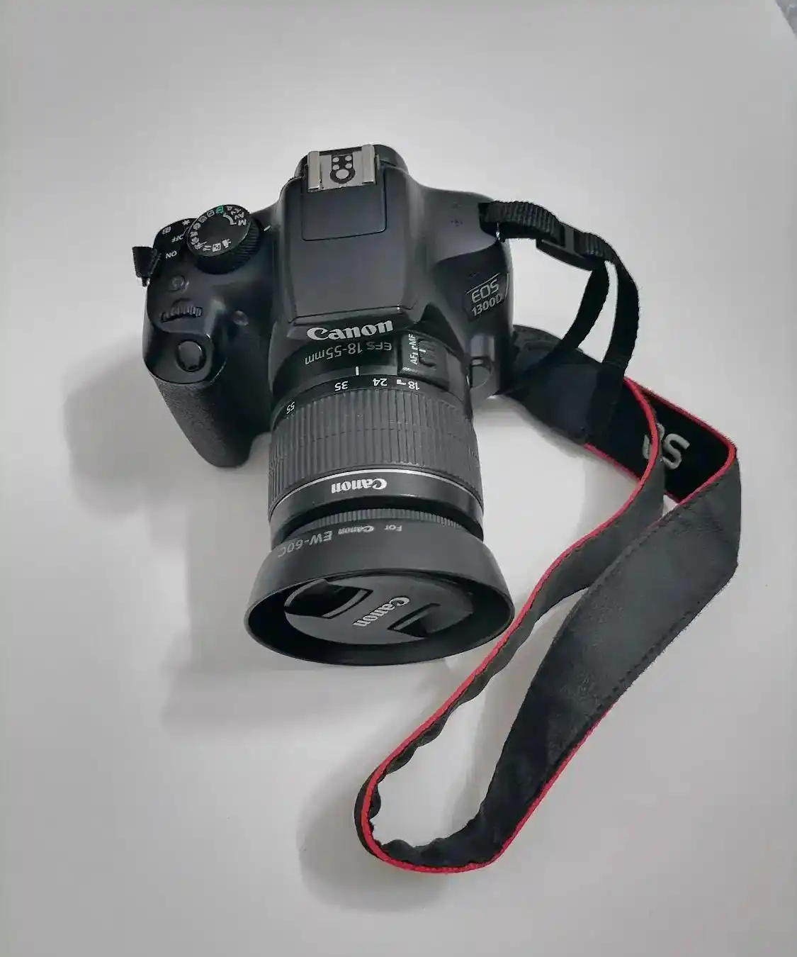 دوربین canon 1300D تعداد شات 6297 لنز 55_18 درحد نو همراه با کیف benro بزرگ بند باتری شارژر