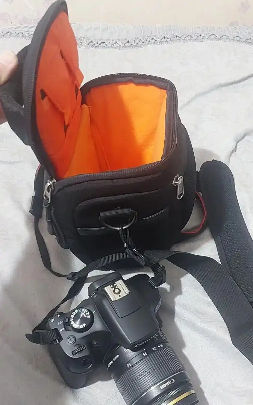 دوربین عکاسی و فیلمبرداریcanon1300Dبا لنز18,55 همراه کیف و ضد خش ال سی دی کابل اچ دی و شارژر و رم ۱۶