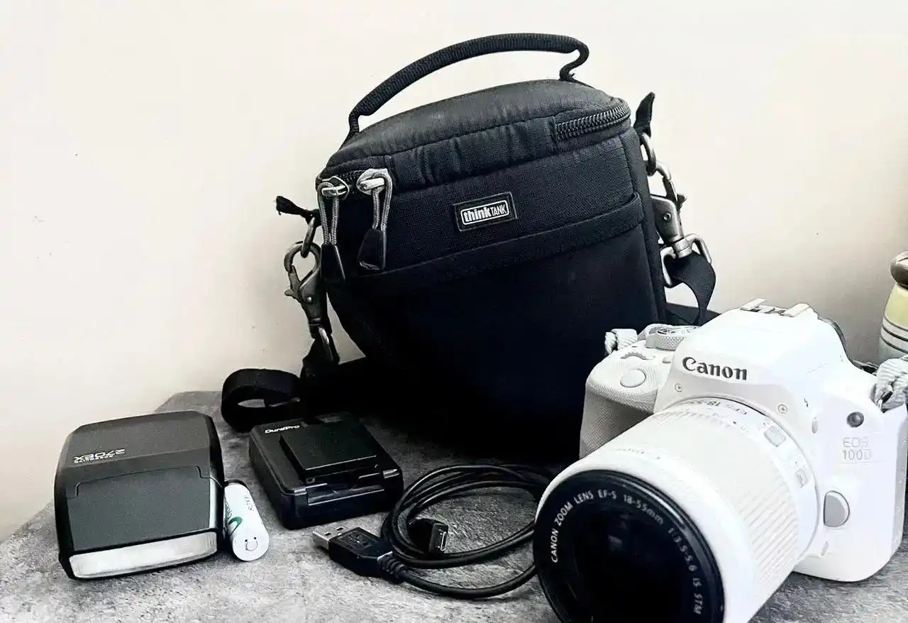 پکیج کامل عکاسی – Canon 100D سفید + لوازم جانبی (در حد نو)