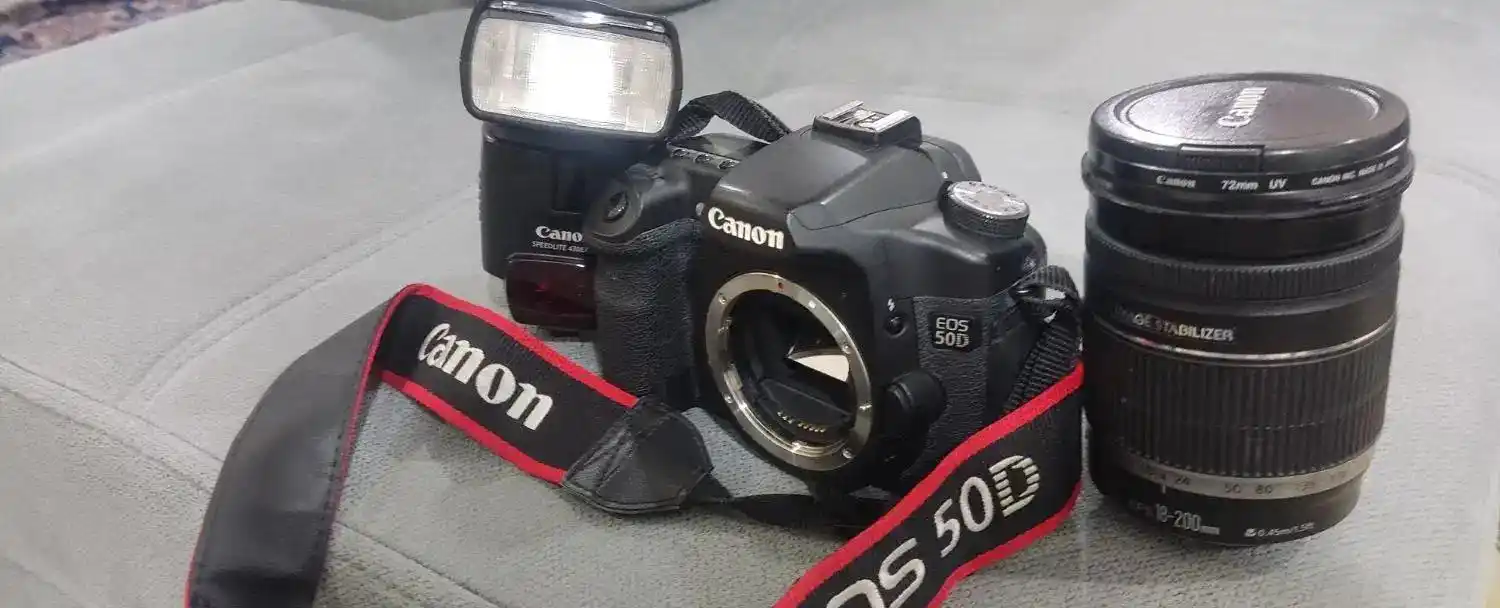 دوربین کنون50d ولنز وباطری شارژر سالم و عالی