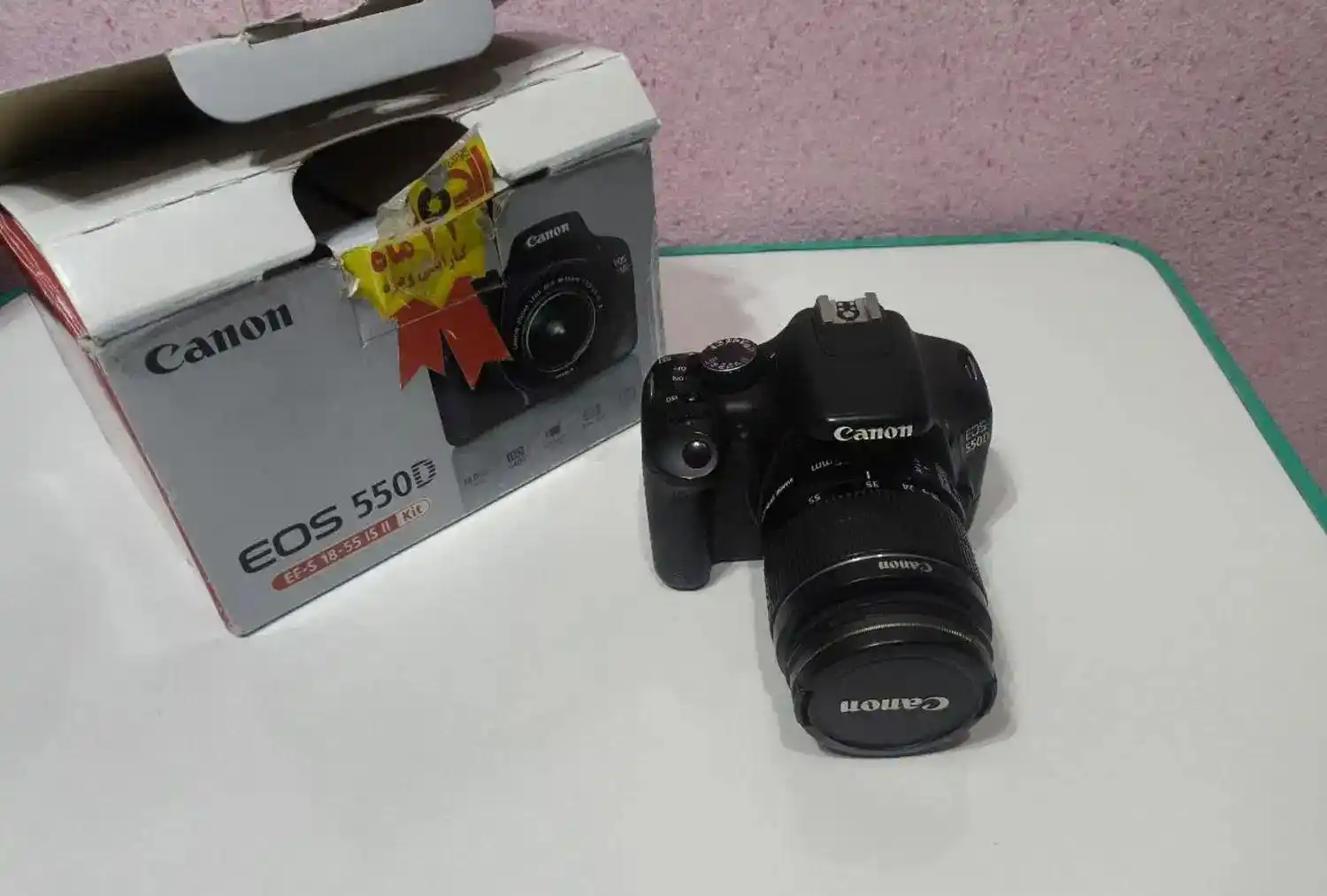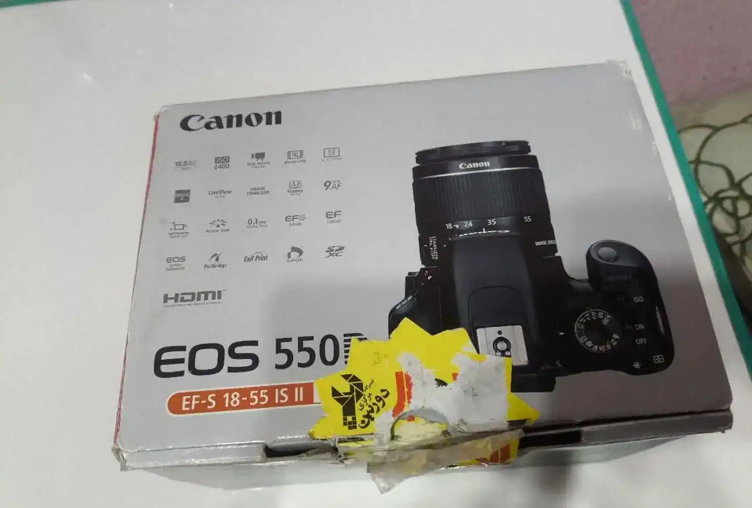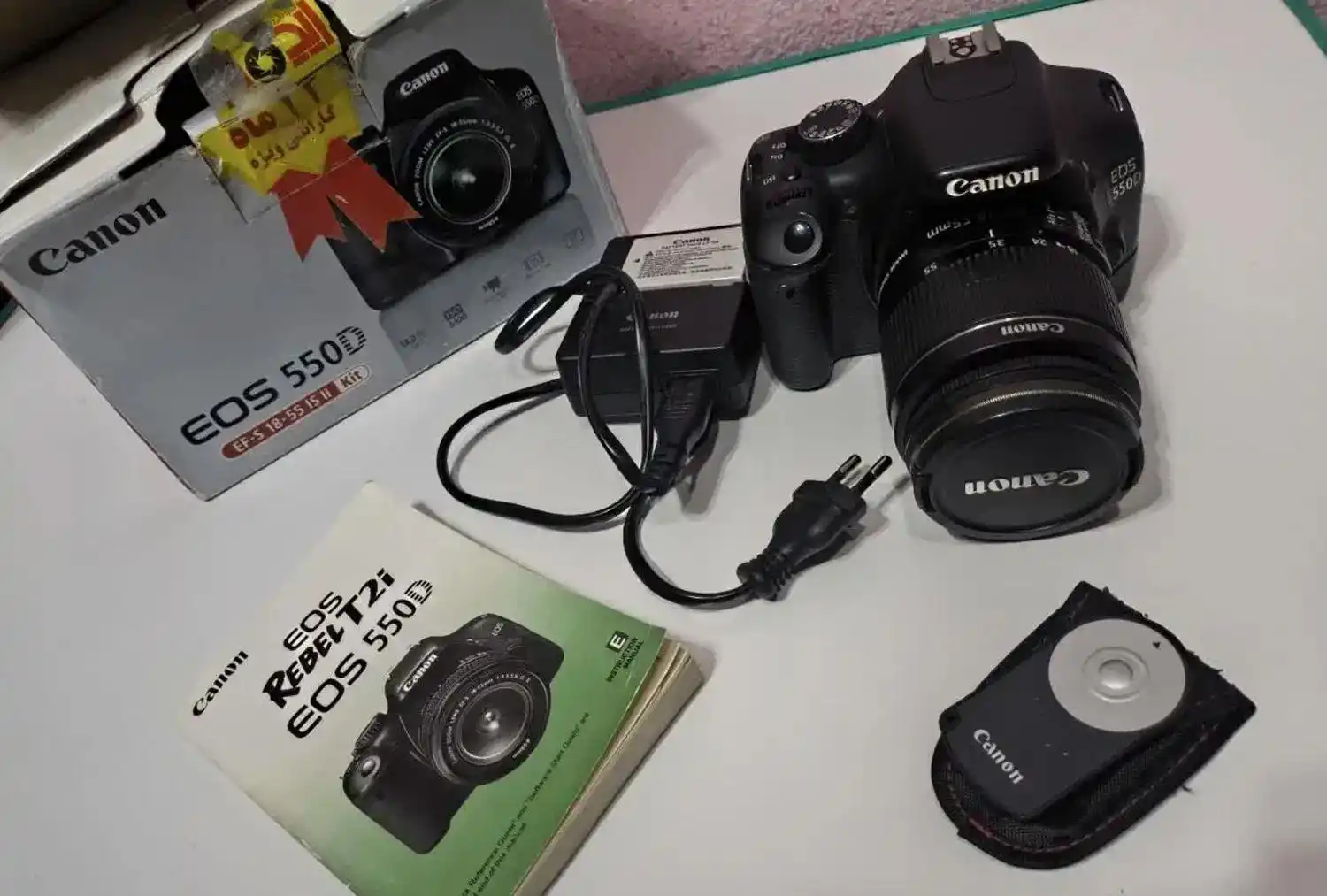 فروش دوربین Canon ESO 550D اورجینال و با کیفیت محصول ژاپن تمیز سالم و بدون خط و خش کم کارکرد شات پایین فقط چند باری برای استفاده شخصی همراه با لوازم جانبی جعبه دوربین باطری سالم و شارژر اصلی