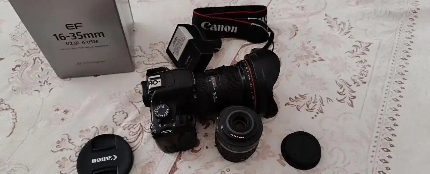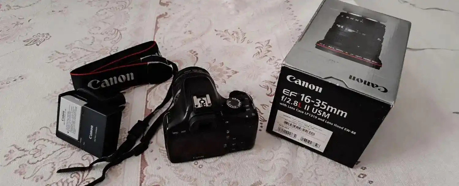 دوربین کنون 550d لنز 18-55 و 16-35 تایپ 2 دیاف2.8
