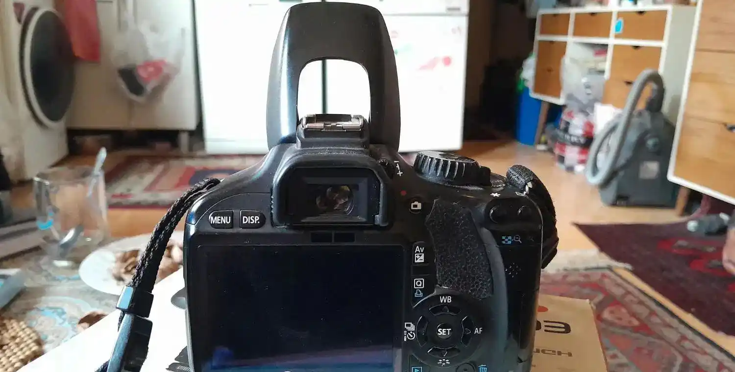 ⚠️ نکته: روکش پلاستیکی زیر دکمه دکلانشور کاملاً جدا شده (قطعهای از دوربین گم نشده و روی عملکرد تاثیری ندارد)