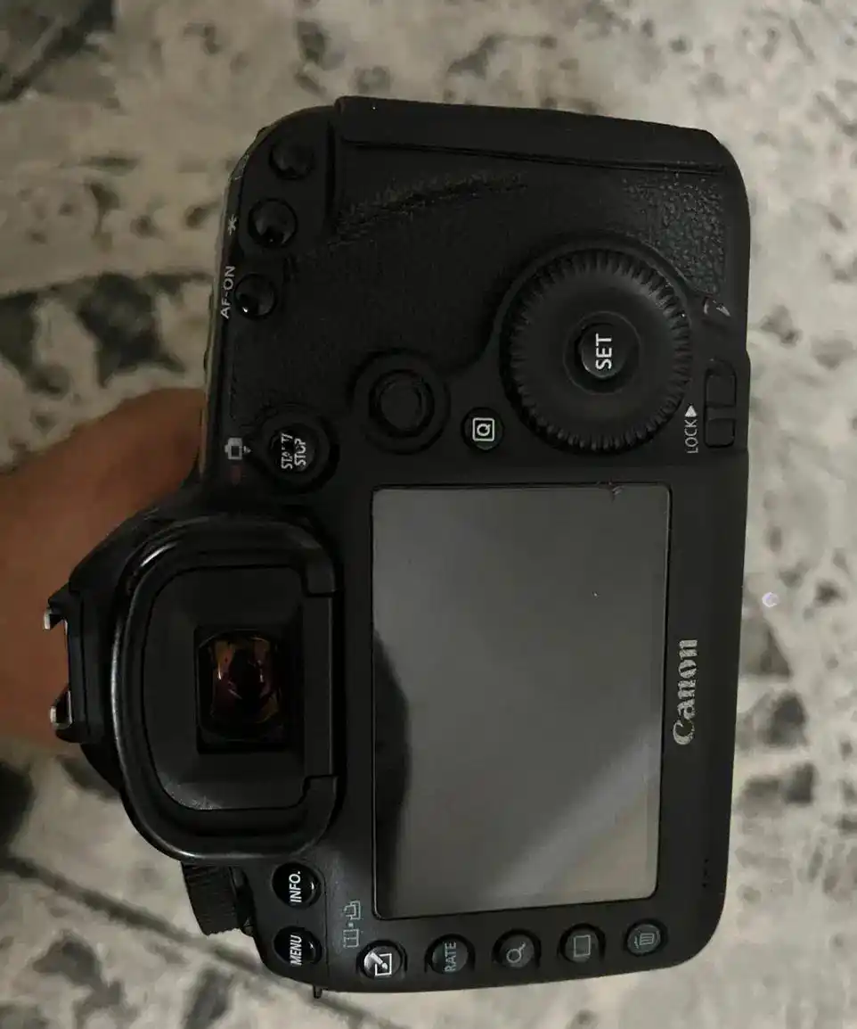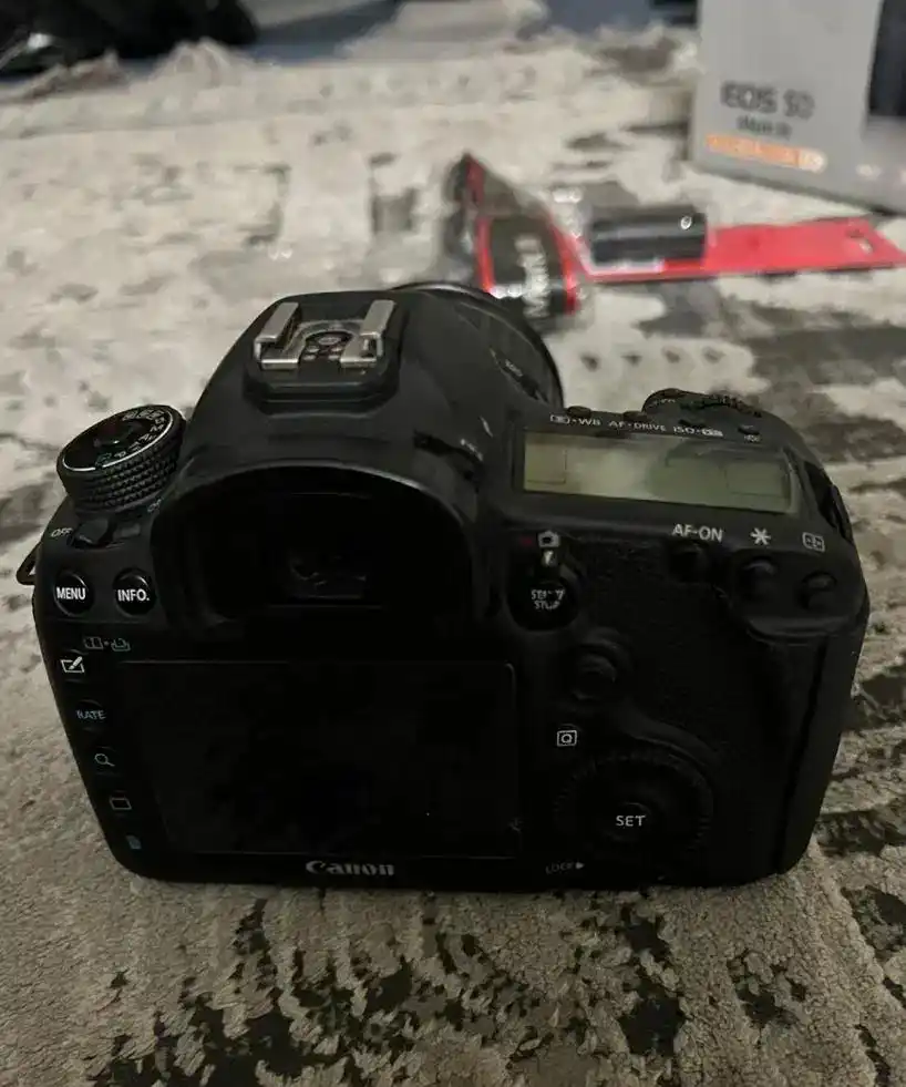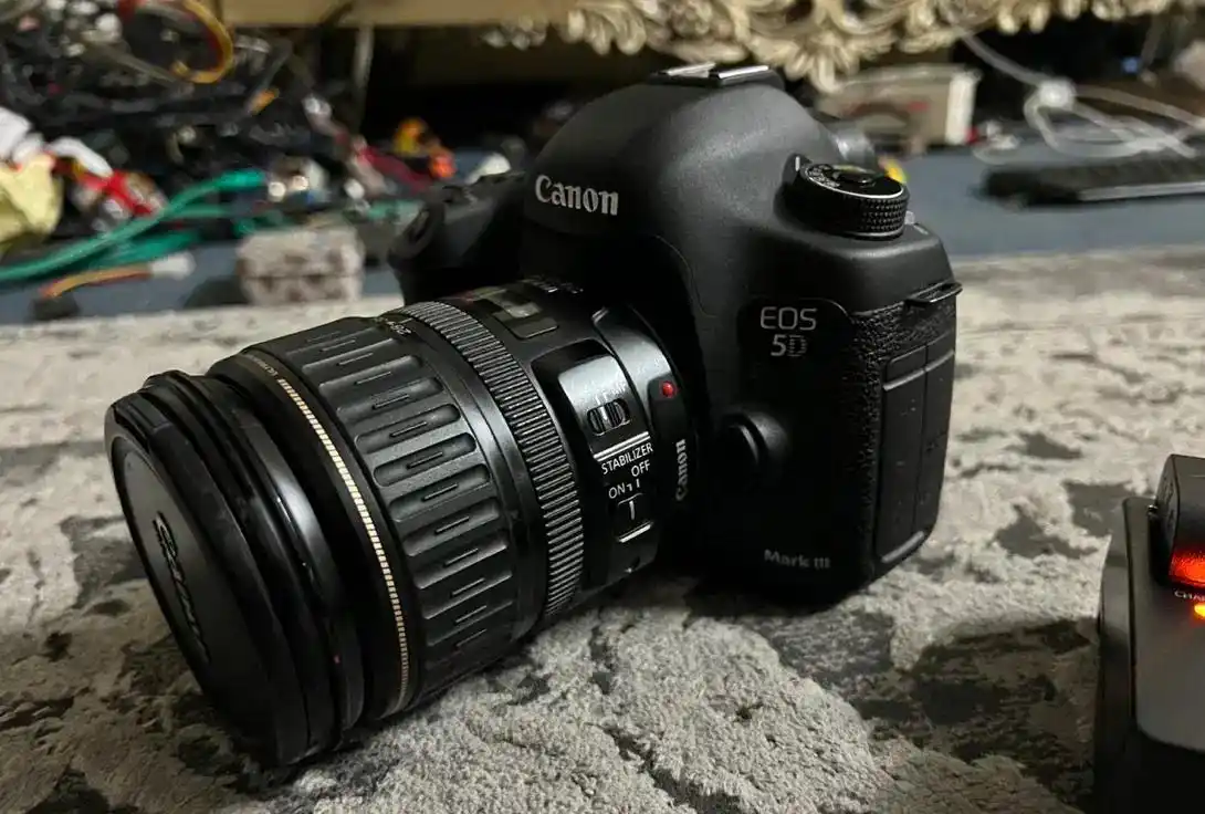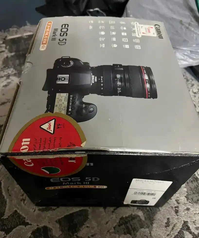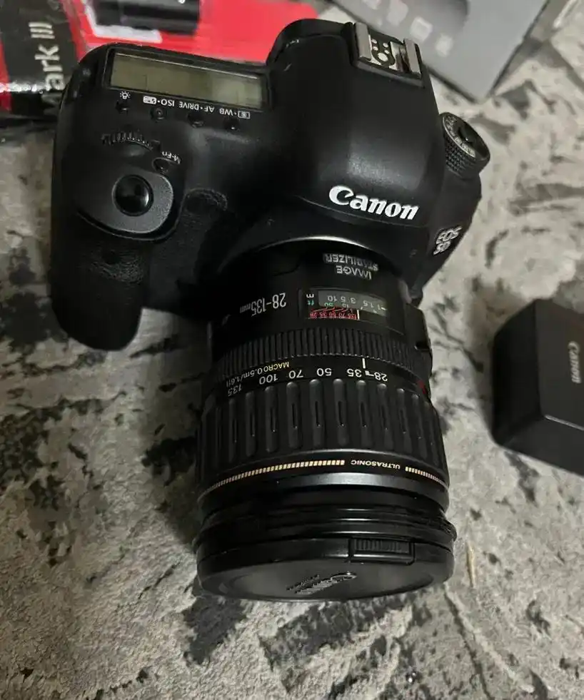 دوربین کنان مارک ۳ 5d بانز ۲۸*۱۳۵ همراه جعبه و شارژر و باطری اکبند تمیز و سالم تخفیف جزئی
