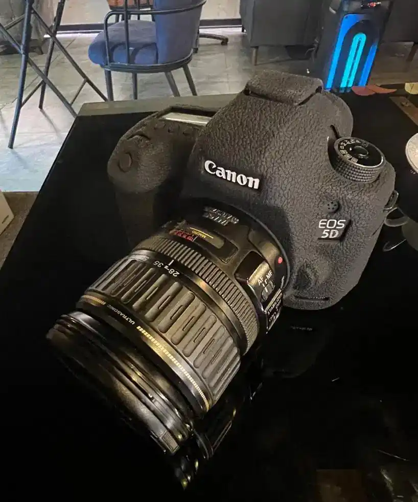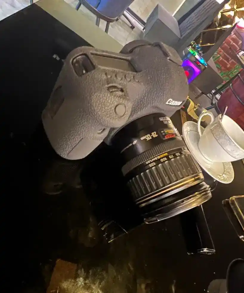 دوربین درحد اکبند تعدادشات ۳۵۰۰ لنز ۲۸*۱۳۵ همراه با رم ۸ گیگ کاور ژله ای کیف درجه یک شارژر فابریک دارای جعبه و متعلقات