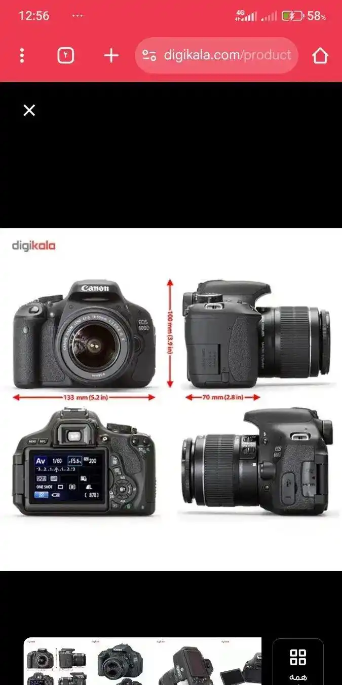کنون 600D دوربین و همه آشنایی دارن با لنز 18_55 فقط یه مشکل در صفحه نمایش داره صفحه قرمز قیمت پایین گذاشتم براش با وسایل کامل باطری شارژر و معموری اصل دوربین