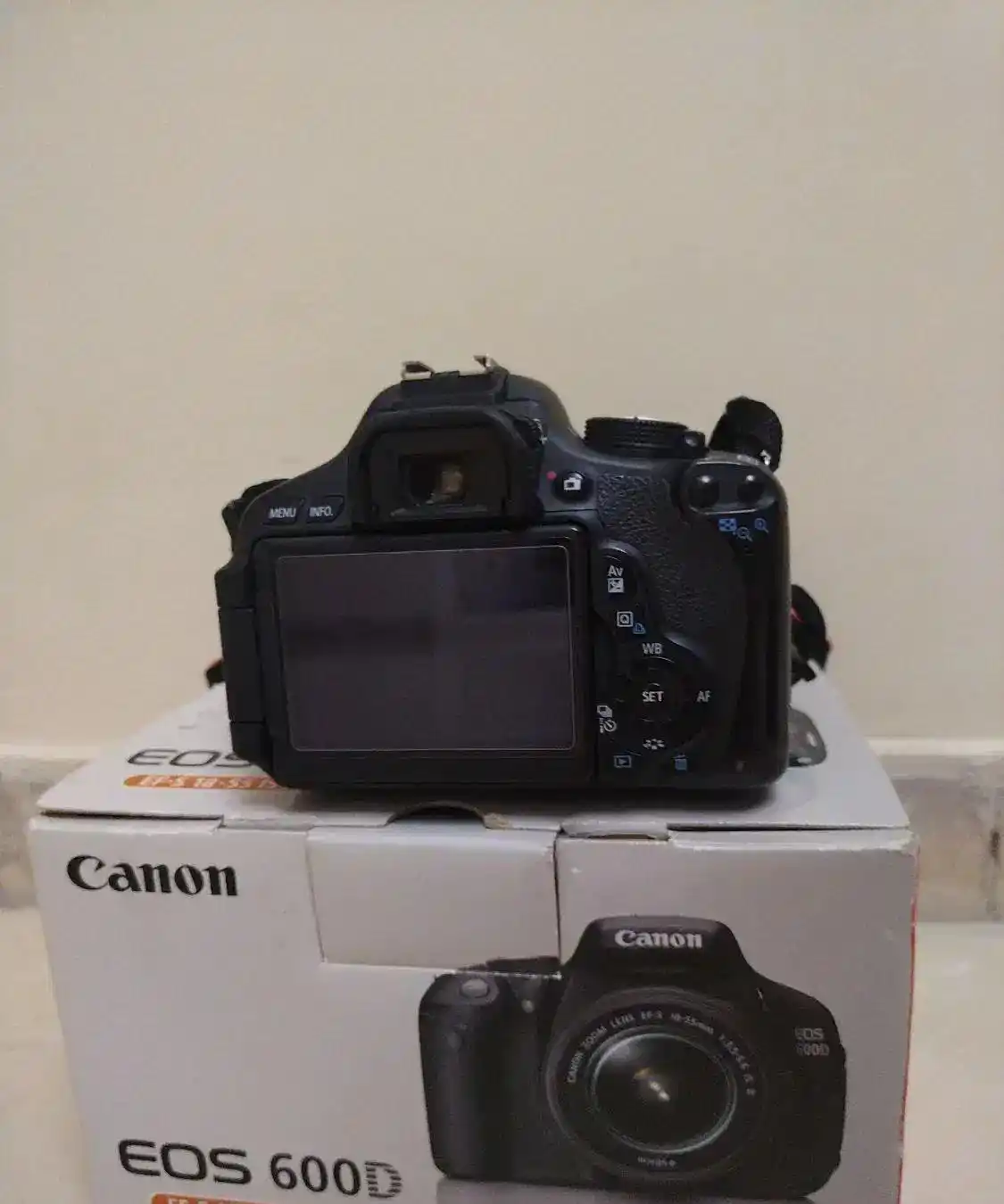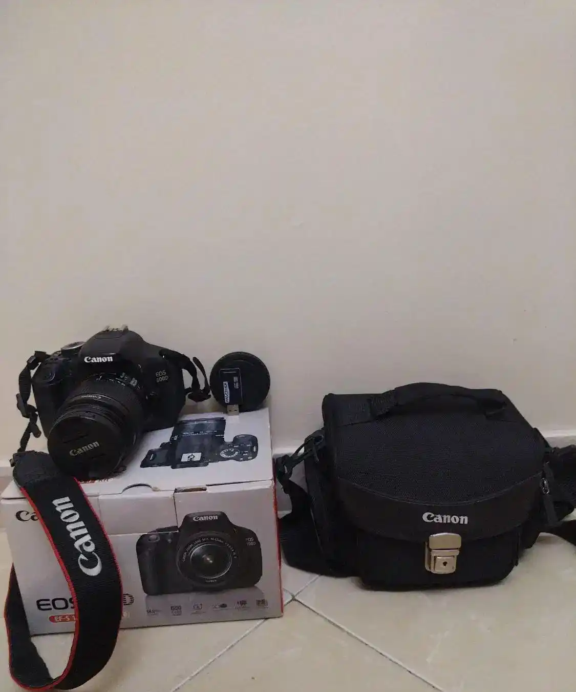 دوربین کنون 600D با لنز 18_55 با جعبه و شارژر و سه پایه و کیف سالم دو سال دستم بوده خیلی کم استفاده شده حدودا 6_7 هزار تا شات خورده تخفیف هم داده میشود