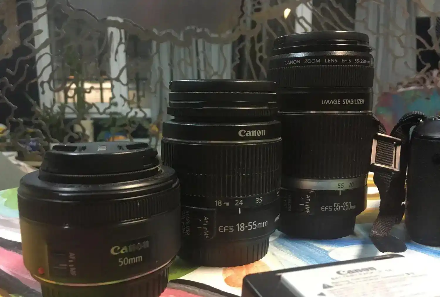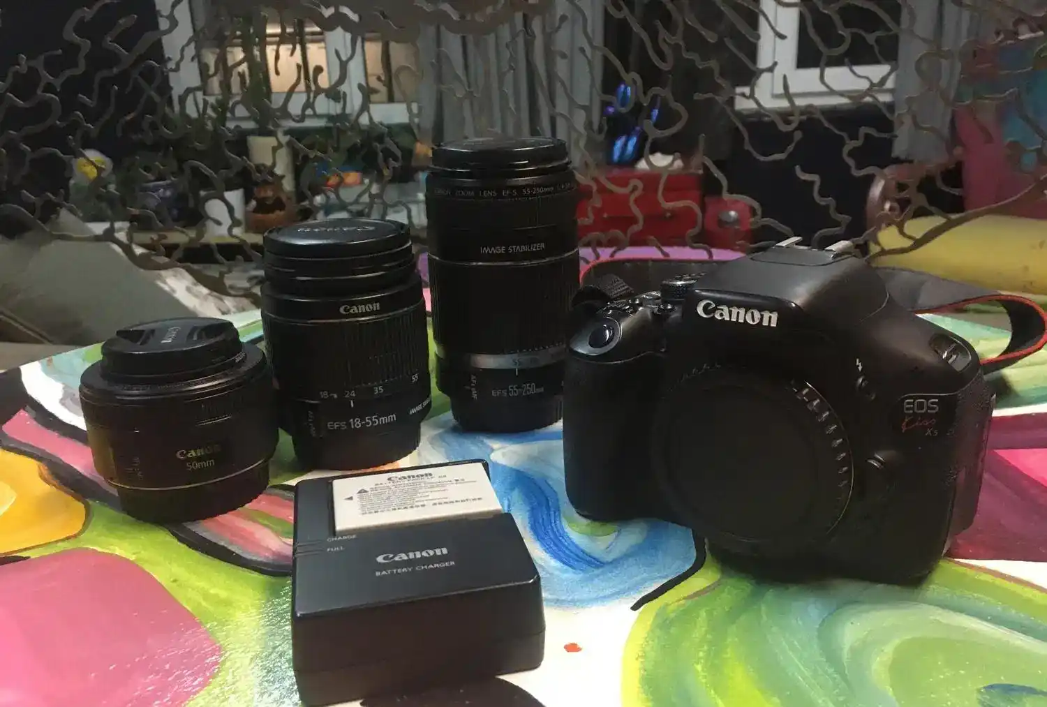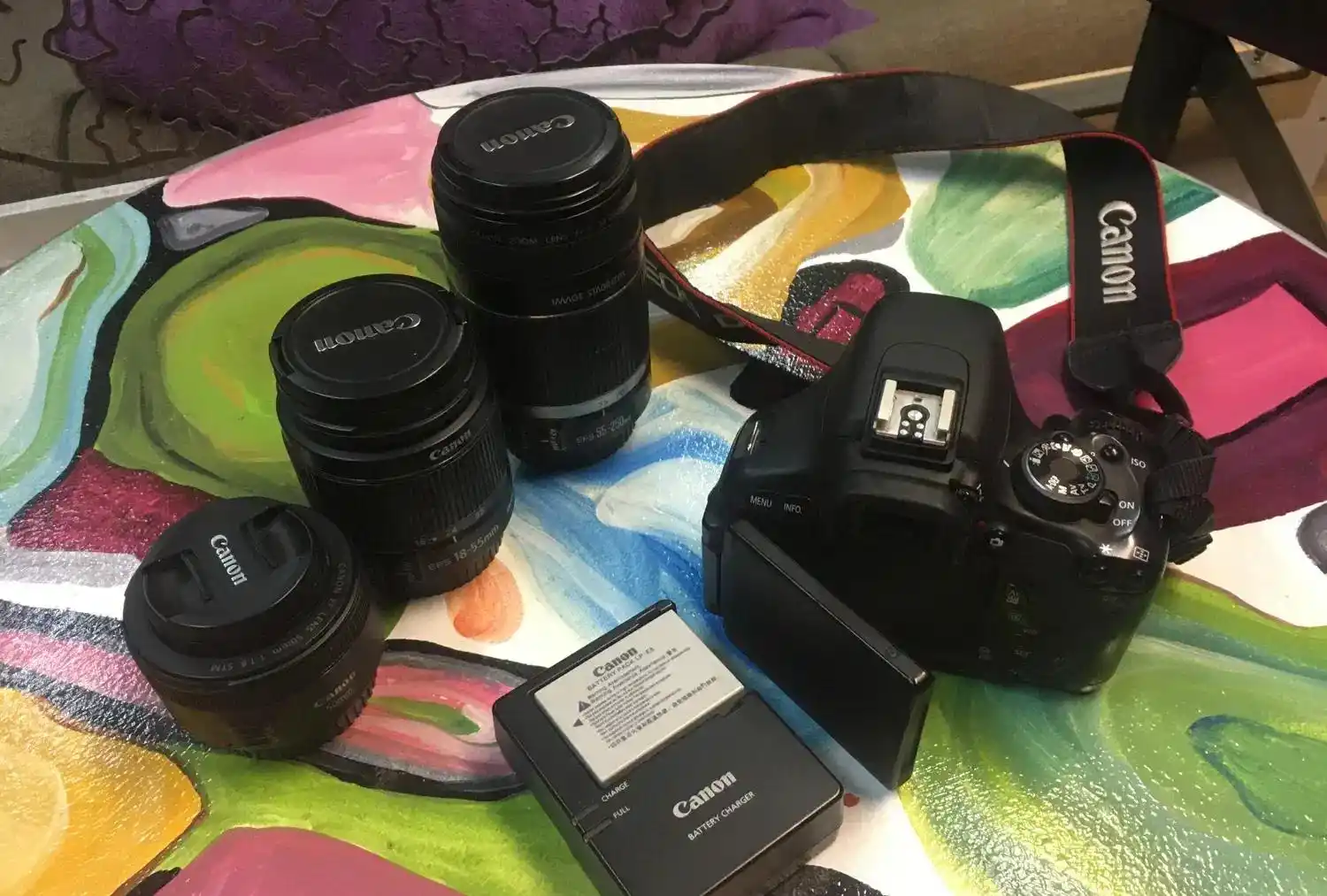 کانن 600D بدون تعمیر سالم، استفاده شخصی بوده باطری ۲ عدد اصلی زاپن و شارژ اصلی محافظ صفحه ال سی ای ۲ عدد فیلتر و ۱ عدد محافظ فیلتر روی هر لنز کیف ریموت لنز ۵۵ ۲۵۰ تله لنز ۱۸ ۵۵ واید ۵۰ فیکس همه جعبه ها موجود