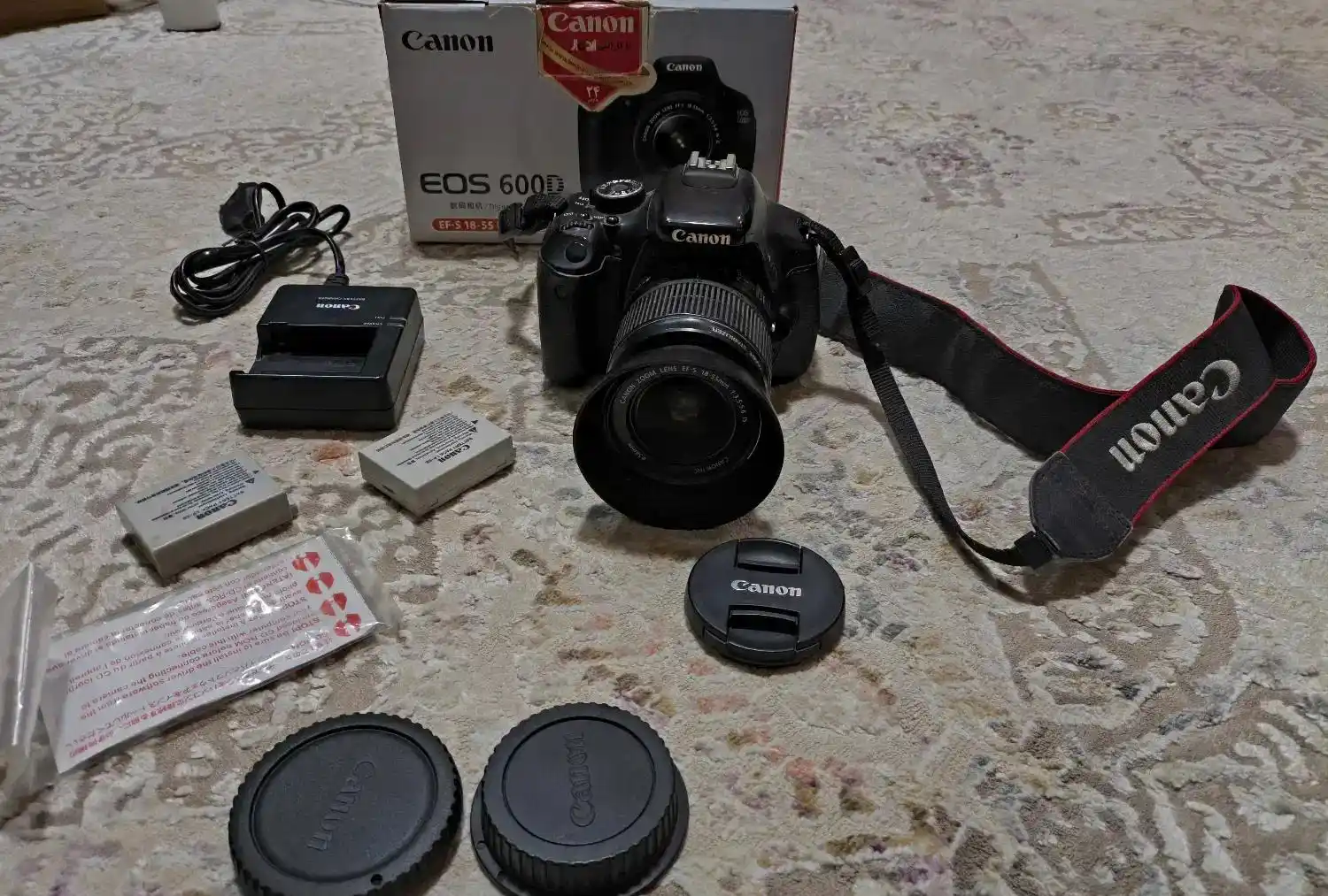 دوربین dslr مدل canon ۶۰۰d با لنز ۱۸۵۵ stm استابلایزر ضد لرزش هودی لنز گردنی محافظ لنز شارژ و دو عدد باطری و کارتون معاوضه با چیزی که به کارم بیاد