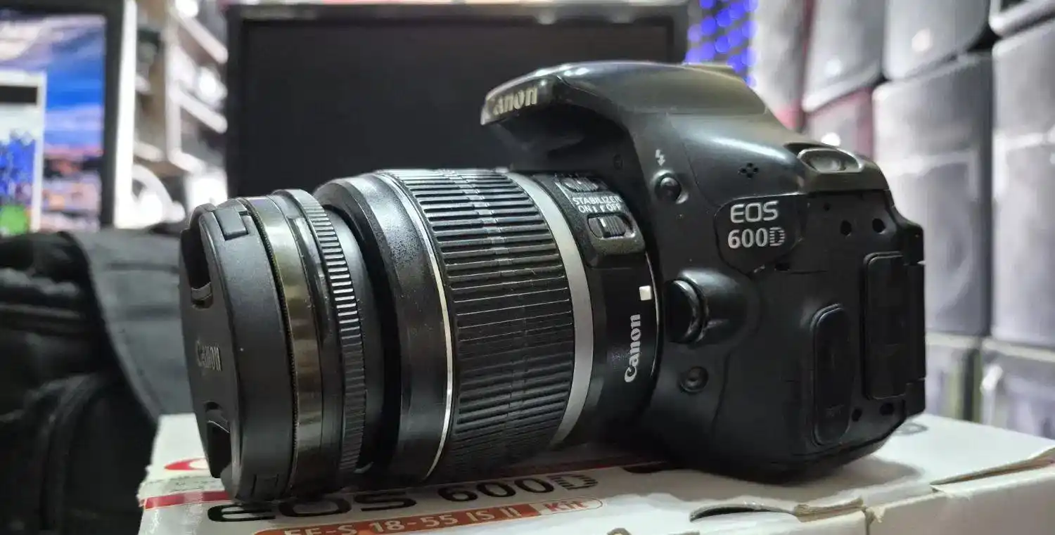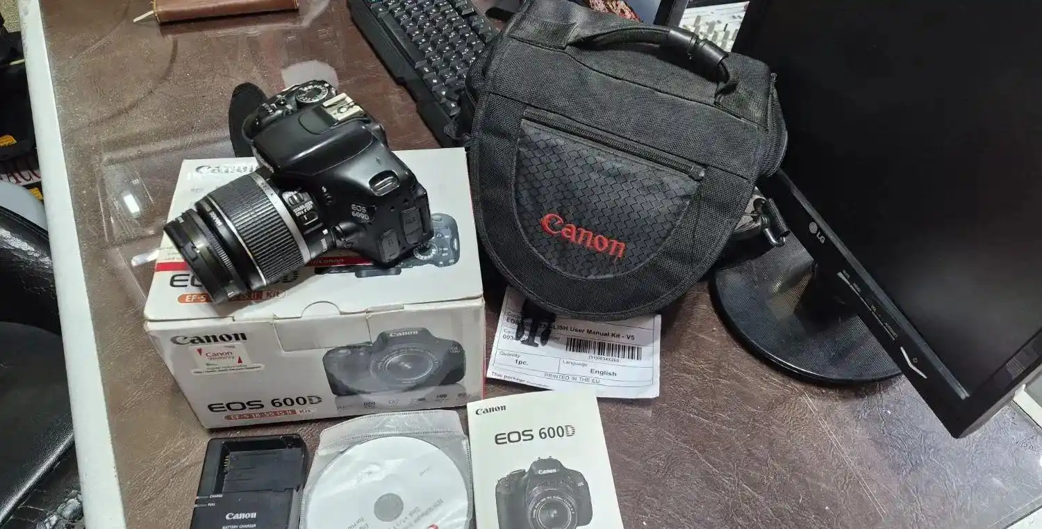 دوربین کنون با لنز ۱۸/۵۵ مدل ۶۰۰D بسیار تمیز به همراه کیف وتمام لوازم جانبی دوربین خانگی بوده بسیار تمیز وبدون خط وخش