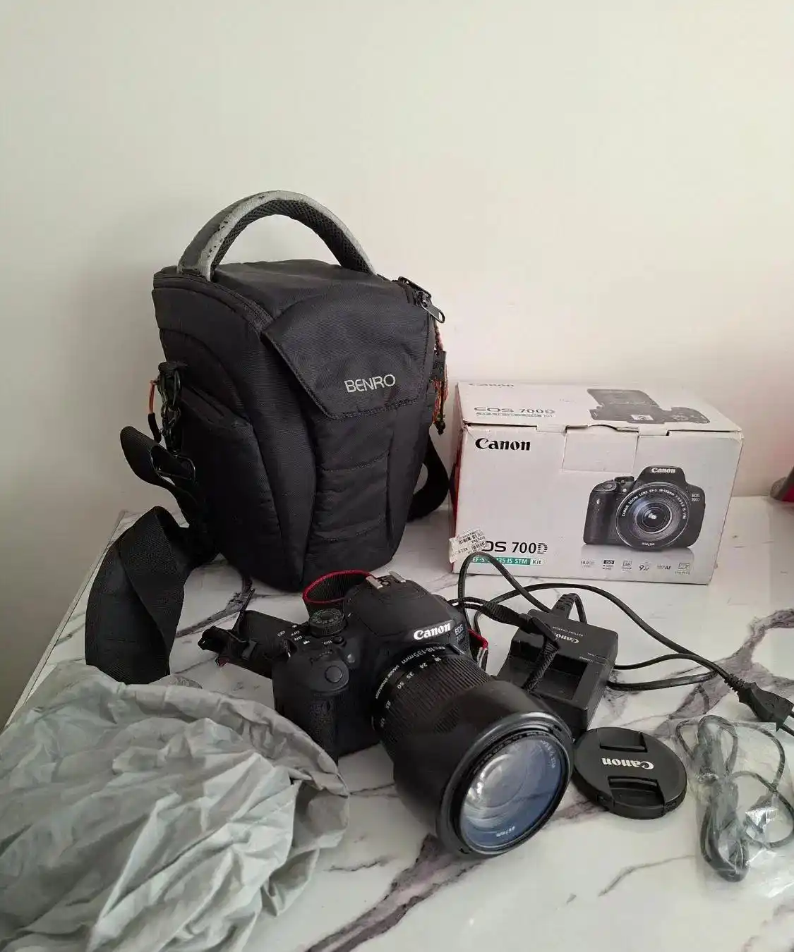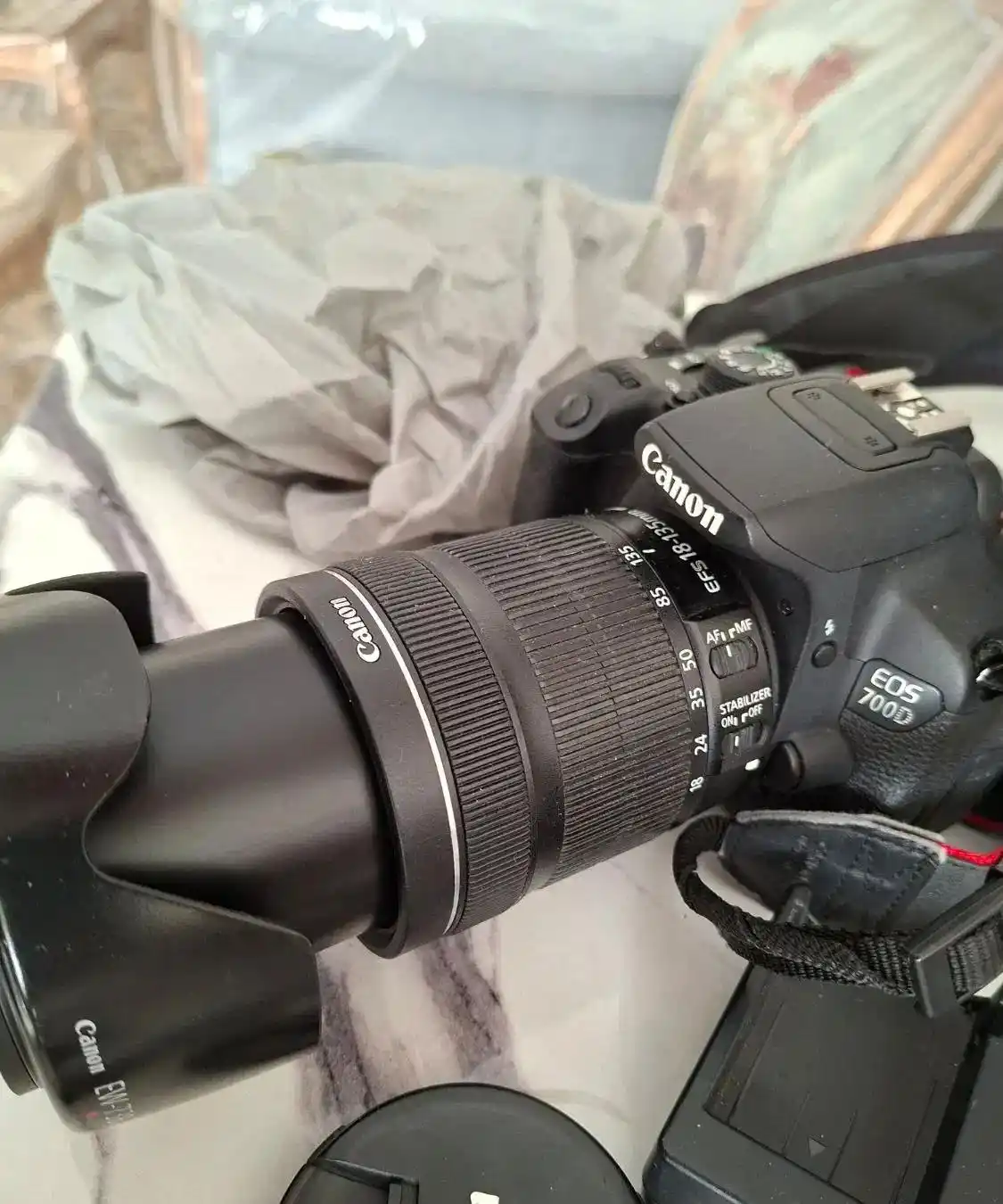دوربین کنون 700D لنز ۱۸_۱۳۵ در حد نو شخصی بوده با تمام وسایل اورجینال و اصل کیف حمل و نقل باطری اصل شارژر کابل انتقال محافظ لنز uv با جعبه و همراه سی دی های اموزشی