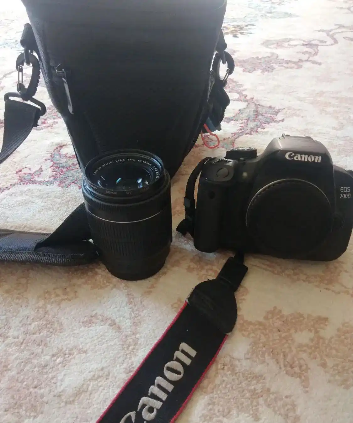 دوربین کانن 700 نو وخیلی کم کار لنز 1855با هودی وکیف باتری نو