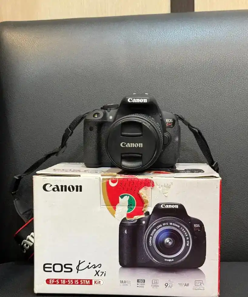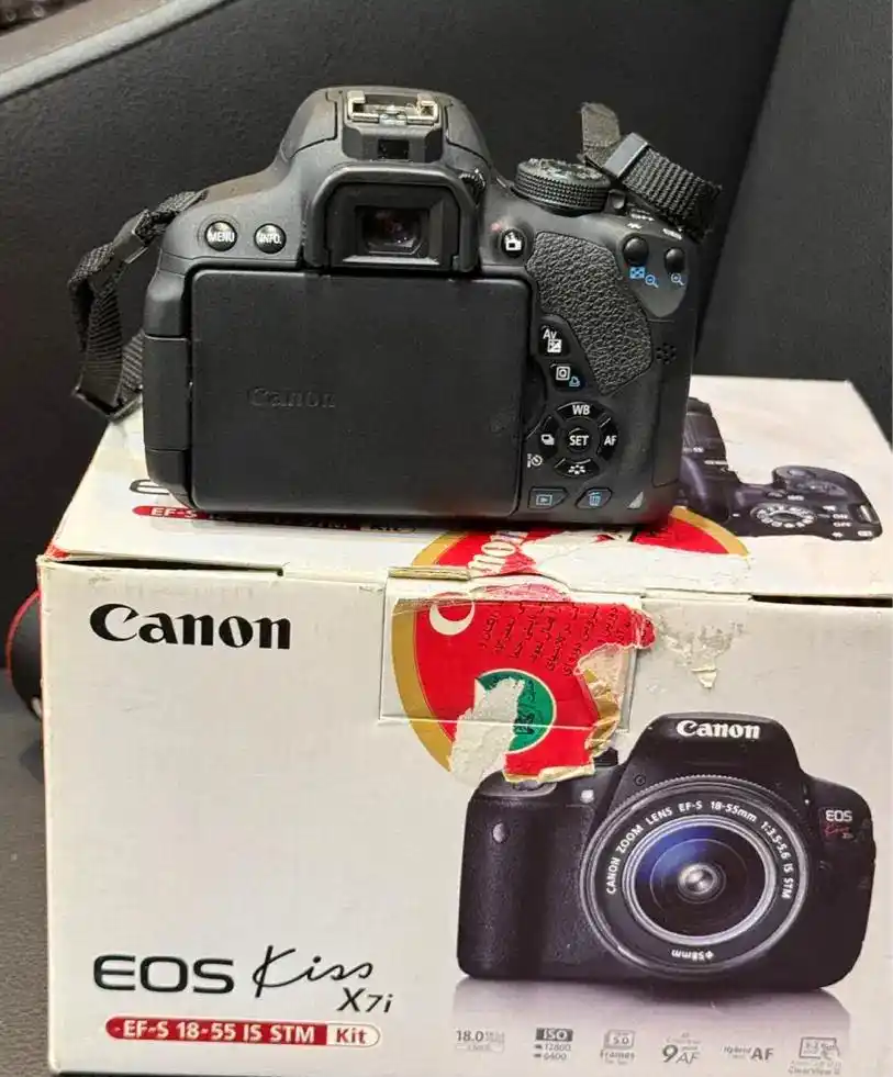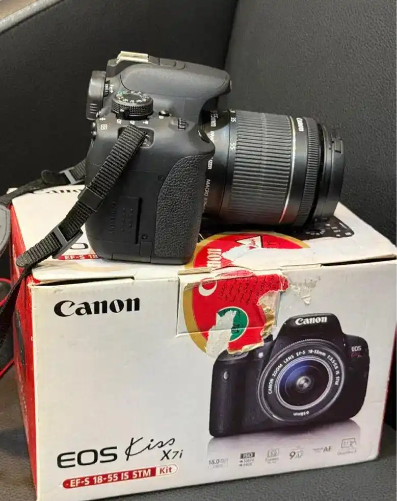 دوربین کنون مدل Eos 700D / kiss X7i به همراه کیت لنز STM-18-55 کاملاً نو و استفاده نشده کلاً ۱۵ عدد شات استفاده شده به همراه رم ۳۲ گیگ ، بند گردنی ، شارژر اصلی استفاده نشده و کیف مخصوص و اورجینال کنون