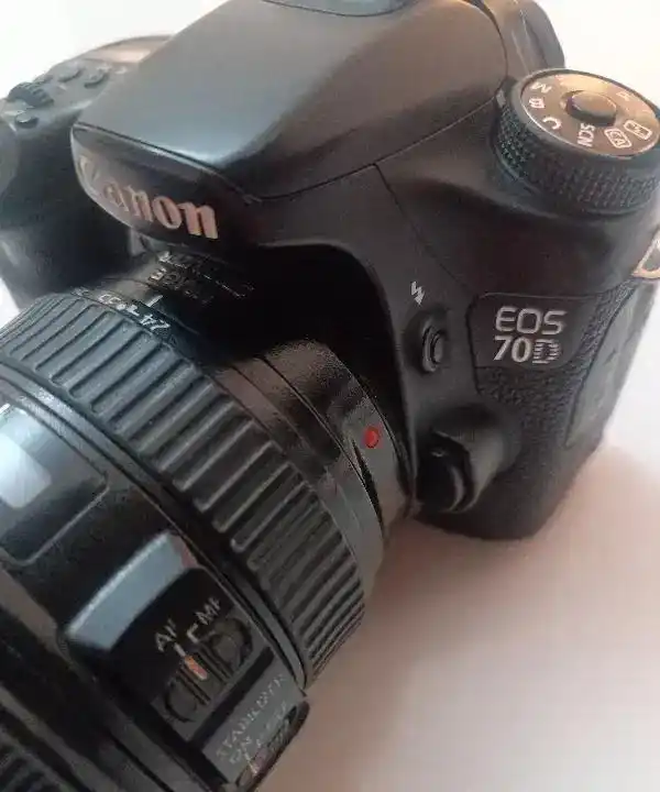 بدنه دوربین 70D هستش زیر ۲۰ هزار شات لنز دوربین هم ۲۴.۱۰۵ که الان نزدیک ۶۰ تومن پول نو این لنزه