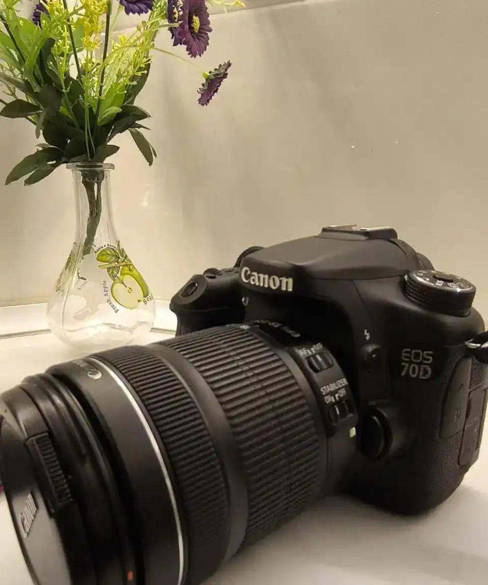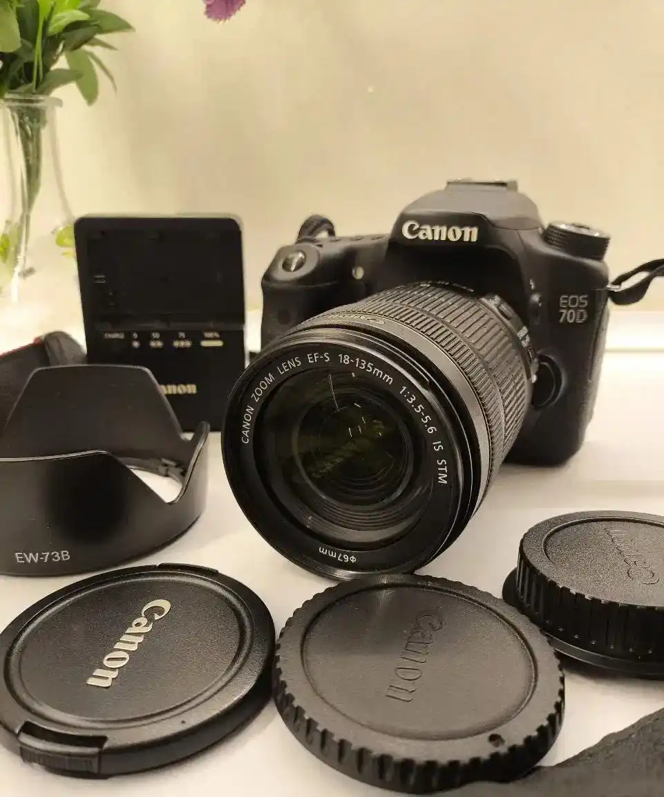 سلام دوربین حرفهای Canon EOS 70D همراه با لنز قدرتمند 18-135mm IS STM، مناسب برای عکاسی و فیلمبرداری با کیفیت بالا.