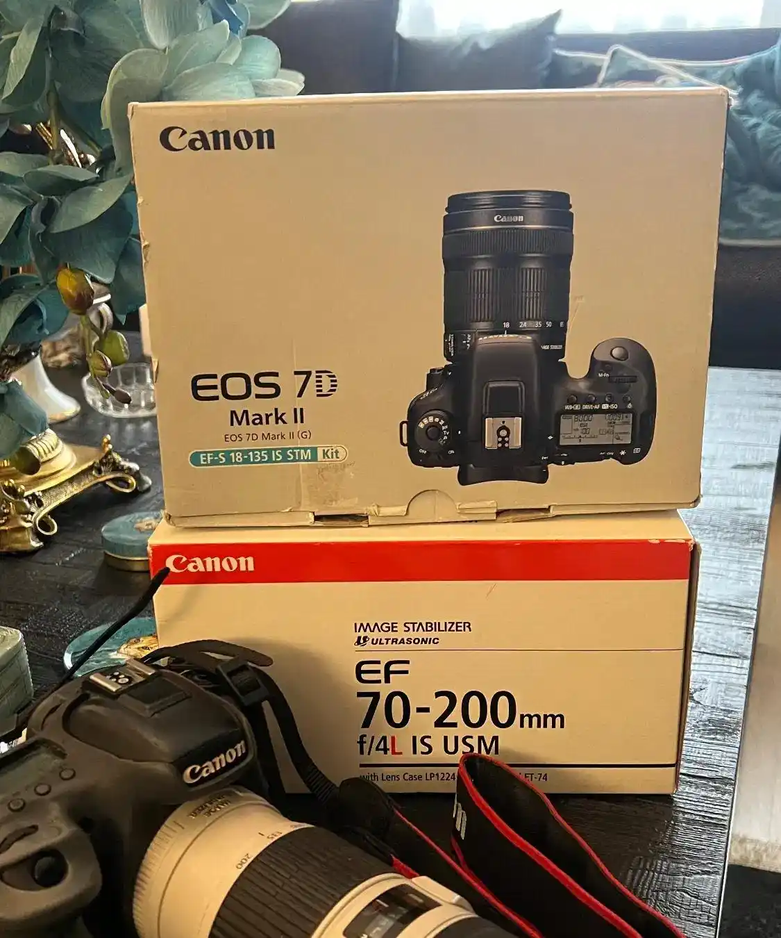 دوربین کنون 7 D مارک ۲ تمیز بدون خش بدنه بدون لنز ۵۵ میلیون لنز 70/200 F4 لرزشگیر دار جدا ۳۵ میلیون جمعا ۹۰ میلیون ترجیحا با هم فروخته میشه تخفیف خرید با هم داده میشه تکی تخفیف نداره